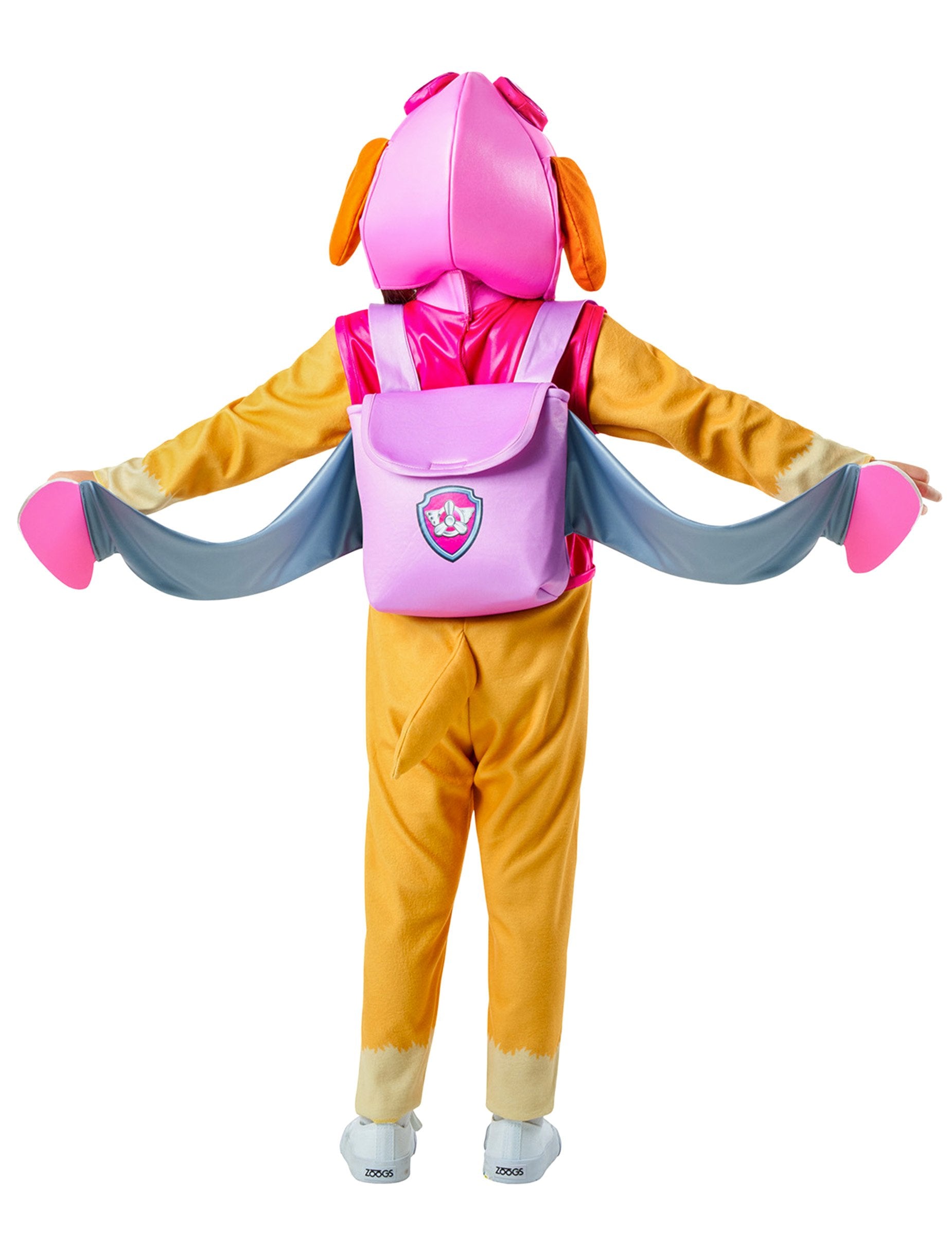 Embarquez pour de nouvelles aventures avec ce superbe déguisement luxe de Stella, la chienne pilote dynamique de la Pat Patrouille ! Conçu pour ressembler fidèlement à son personnage préféré, il plongera votre enfant dans l’univers de la série en un clin d’œil. Ce costume se compose d’une combinaison à manches longues, douce et confortable, dans les tons emblématiques de Stella. Une capuche rigolote avec ses lunettes d’aviateur roses et des oreilles en mousse rembourrées vient compléter le look. Les ailes en tissu fournies s’enfilent facilement grâce à des sangles et une ceinture, pour assurer un bon maintien tout en laissant une grande liberté de mouvement. Parfait pour un Carnaval, un goûter d’anniversaire, une fête costumée ou simplement pour jouer à la maison, ce déguisement fera le bonheur des petits pilotes en herbe fans de la Pat’ Patrouille !