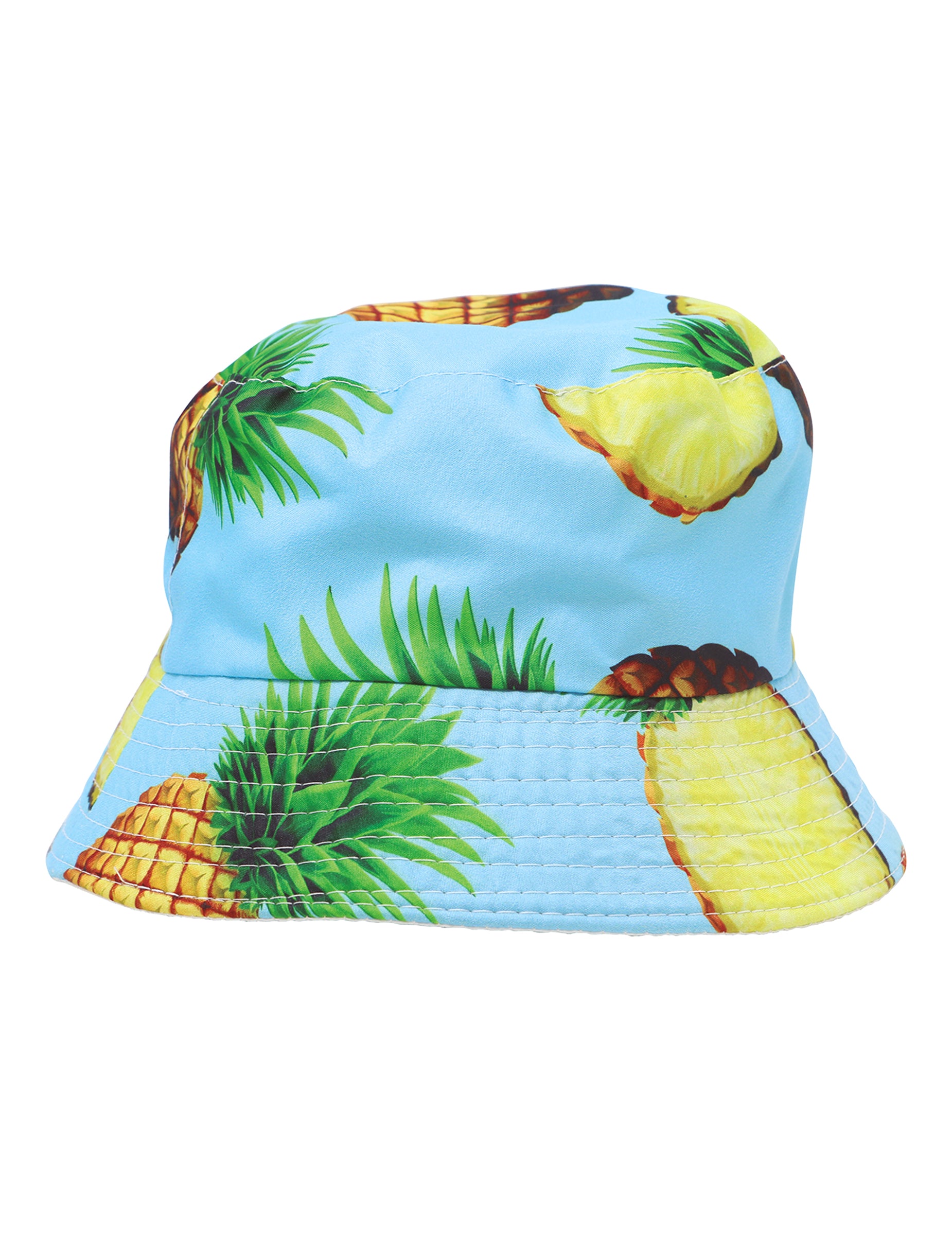 Egy égkék, puha karimájú vödörkalapból áll, amelyet egész és szeletelt ananász mintája díszít az egész felületén. Ez a színes és gyümölcsös minta azonnal felidézi... vakáció, ott strand és a pihenés a pálmafák alatt.