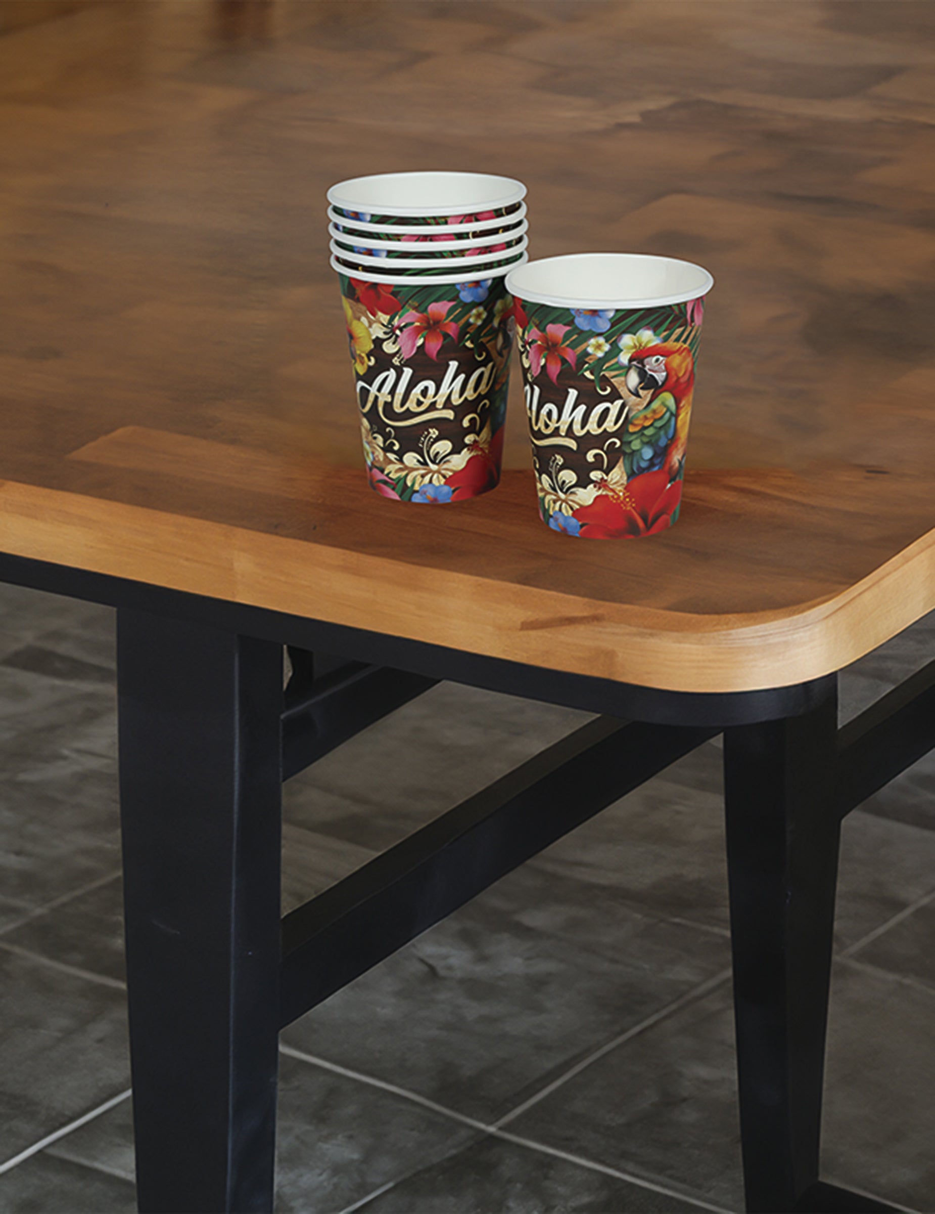 Ez a 6 Aloha Hawaii papírpoharak, 240 ml kapacitással és 9 magassággal rendelkező készlet cm Tökéletes az ünnepi és színes dekoráció befejezéséhez. Trópusi virágmintákkal és egzotikus papagájokkal nyomtatva ezeket az eldobható szemüvegeket úgy tervezték, hogy hideg italokat szolgáljanak fel, miközben napos jegyzetet adnak az asztalhoz. Tökéletes kerti partira, sziget témájú estére vagy nyári születésnapjára.