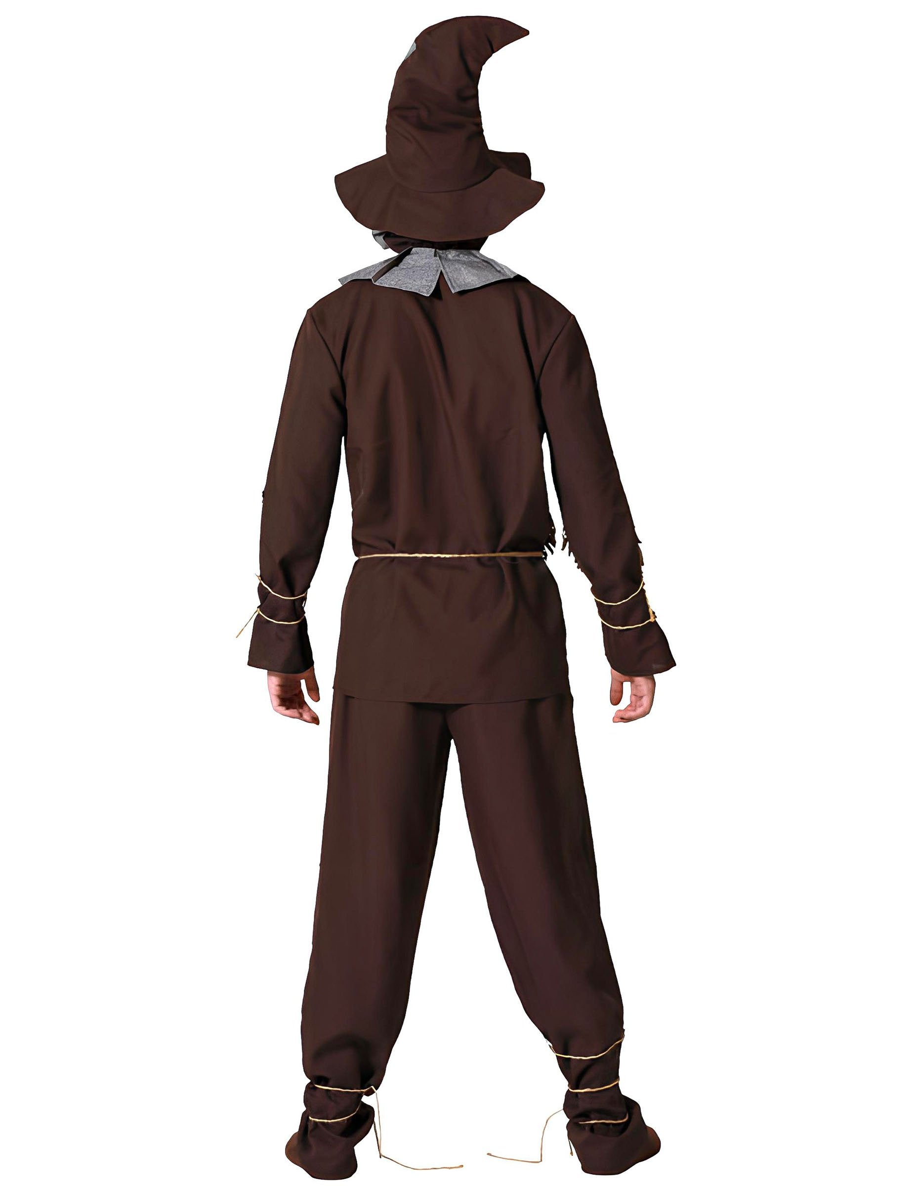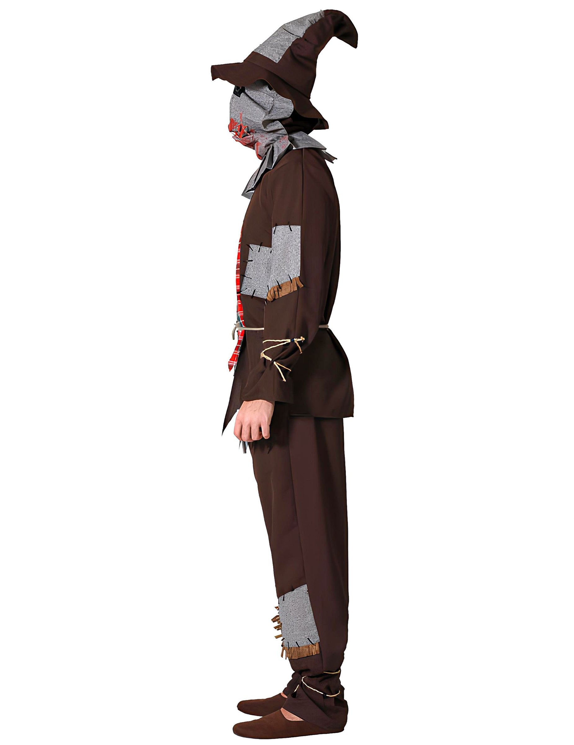 Ce déguisement d’épouvantail ensanglanté pour homme se compose d’un haut à effet patchwork, d’un pantalon assorti, d’un chapeau pointu déformé, d’un masque macabre, d’une ceinture en corde et de liens pour poignets et chevilles. Le haut intègre un mélange de motifs écossais et de tissus déchirés, évoquant une silhouette effrayante tout droit sortie des champs maudits. Les manches et les jambes présentent un effet usé et effiloché, renforçant le caractère inquiétant de cette créature. Le masque, orné de traces de sang et d’une expression figée, vient accentuer l’horreur du personnage. Le chapeau, tordu et rapiécé, parachève l’allure effrayante de cet épouvantail possédé. Ce costume terrifiant est parfait pour semer l’effroi lors d’une soirée d'Halloween ou d’un événement déguisé.