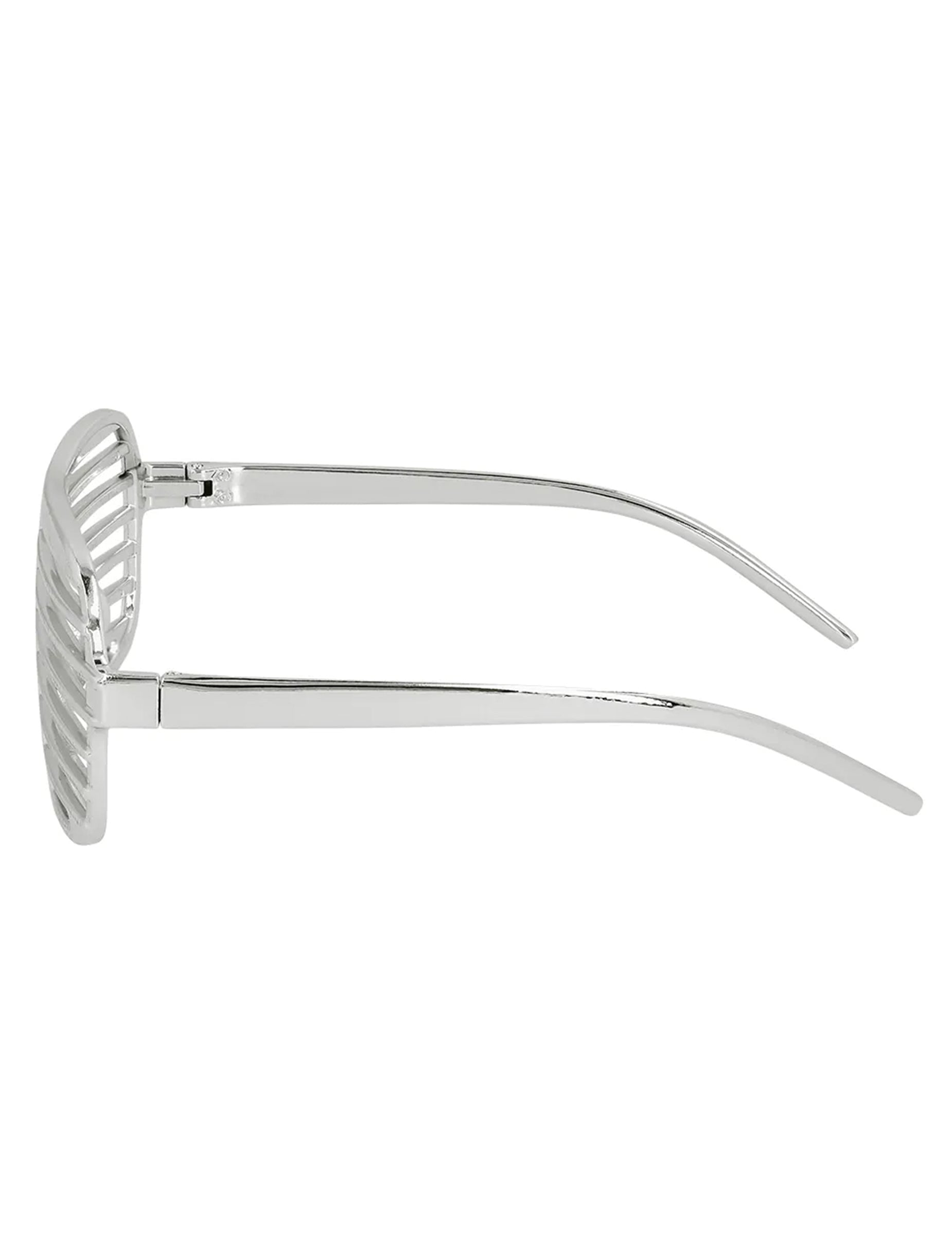 Ces lunettes striées argentées pour adulte complètent parfaitement un look festif ou rétro. Leur monture métallisée et leurs fentes horizontales rappellent les styles emblématiques des soirées dansantes et des costumes flamboyants. Leur effet miroir capte la lumière et attire tous les regards, sans masquer totalement le visage. la fois légères et marquées, elles apportent une touche finale à une tenue décalée, idéale pour briller sur la piste ou lors d’un événement déguisé.