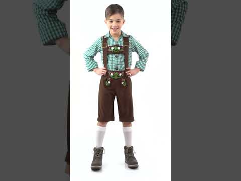 Ez a zöld bajor gyermekeknek szóló jelmez a zöld és a fehér ellenőrzésű inget kombinálja, barna objektummal, hímzett virágmintákkal díszítve. A tipikus bajor ruhák ihlette, folklór és ünnepi érintést hoz. Kiválóan alkalmas karnival felvonulásra, show -ra vagy regionális fesztiválra, ez a jelmez egyesíti a hagyományos stílust és a kényelmet, hogy a gyerekek teljes mértékben élvezhessék az eseményt.
