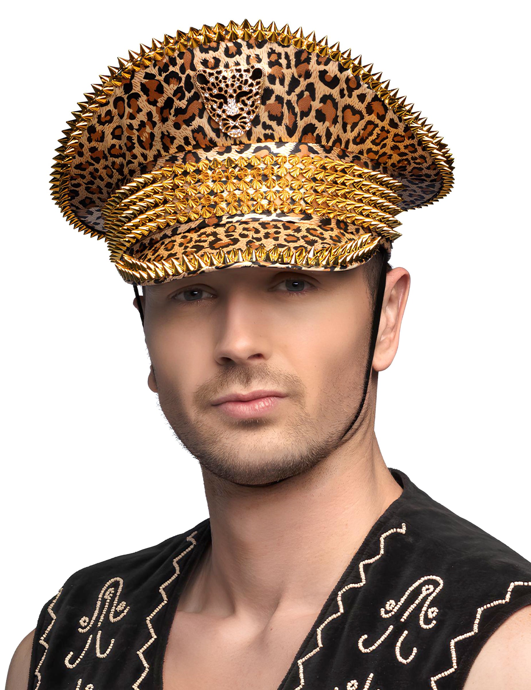 Affichez un style audacieux avec cette casquette à imprimé léopard rehaussée de clous dorés étincelants. Son design unique allie luxe et robustesse, apportant une touche glamour et tendance à votre tenue. Confortable et facile à porter, elle est l’accessoire parfait pour compléter un costume, une soirée à thème ou simplement pour affirmer un look original et décalé.