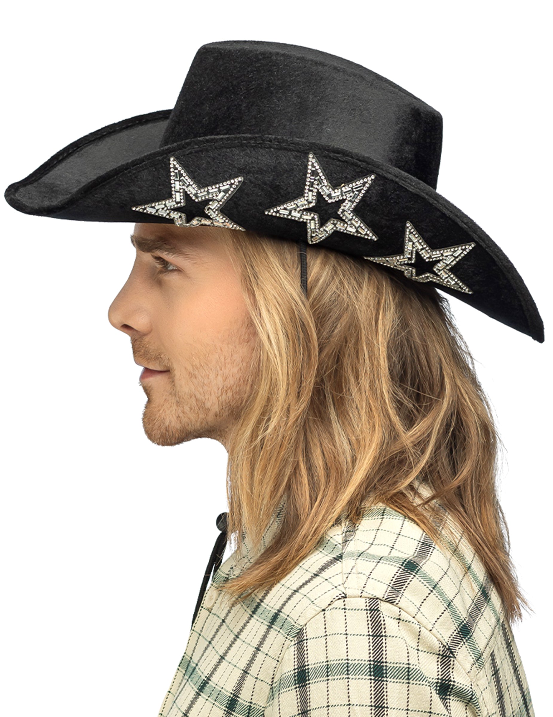Chapeau Cowboy noir avec étoiles argentées adulte