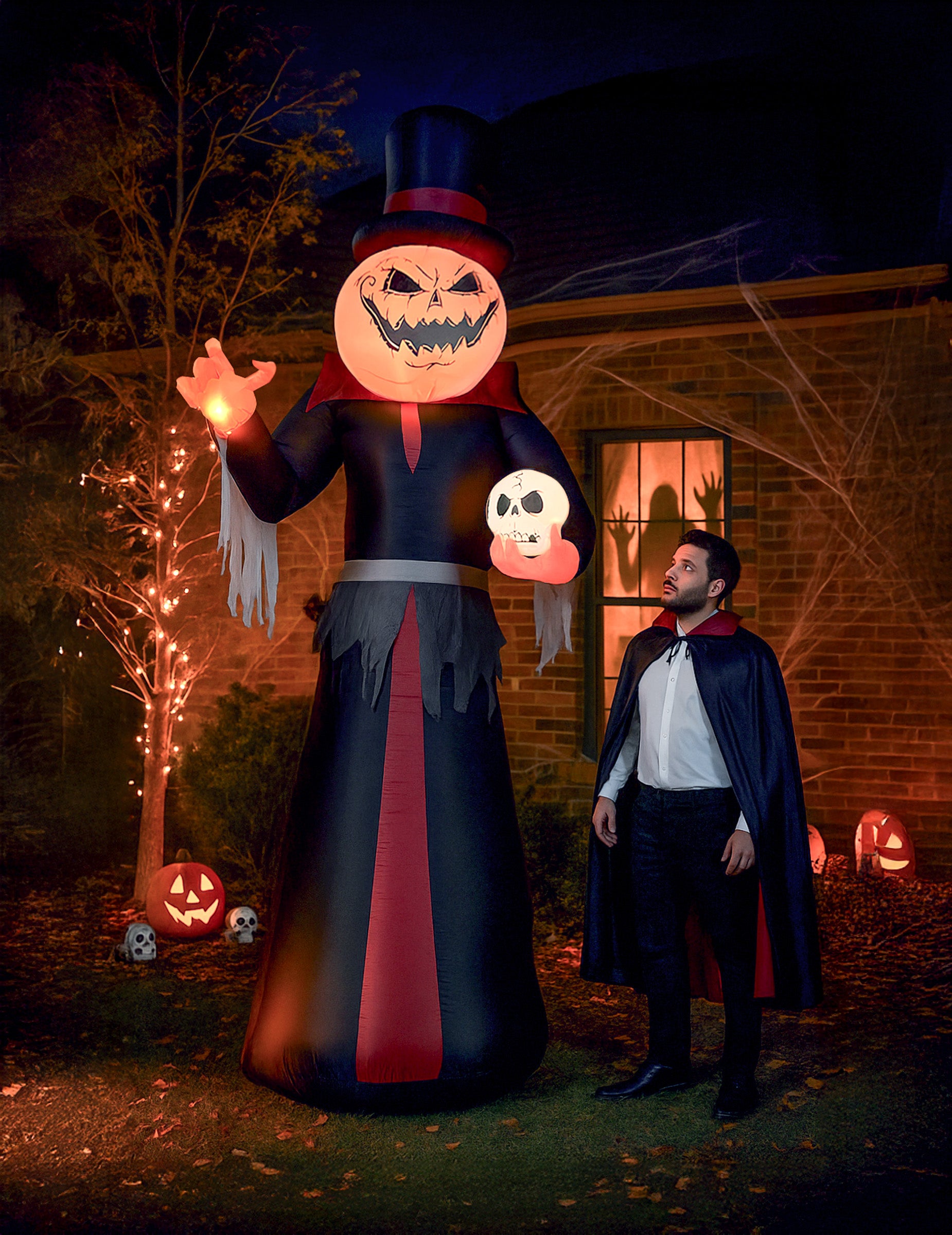 Lenyűgözi vendégeit ezzel a hatalmas, félelmetes felfújható tök dekorációval, amely közel 3,60 m magas. Tartós nylonból készült, és elektromos felfújó rendszerrel (AC 220-240 Volt) van felszerelve, amely gyors és egyszerű felállítást tesz lehetővé.
