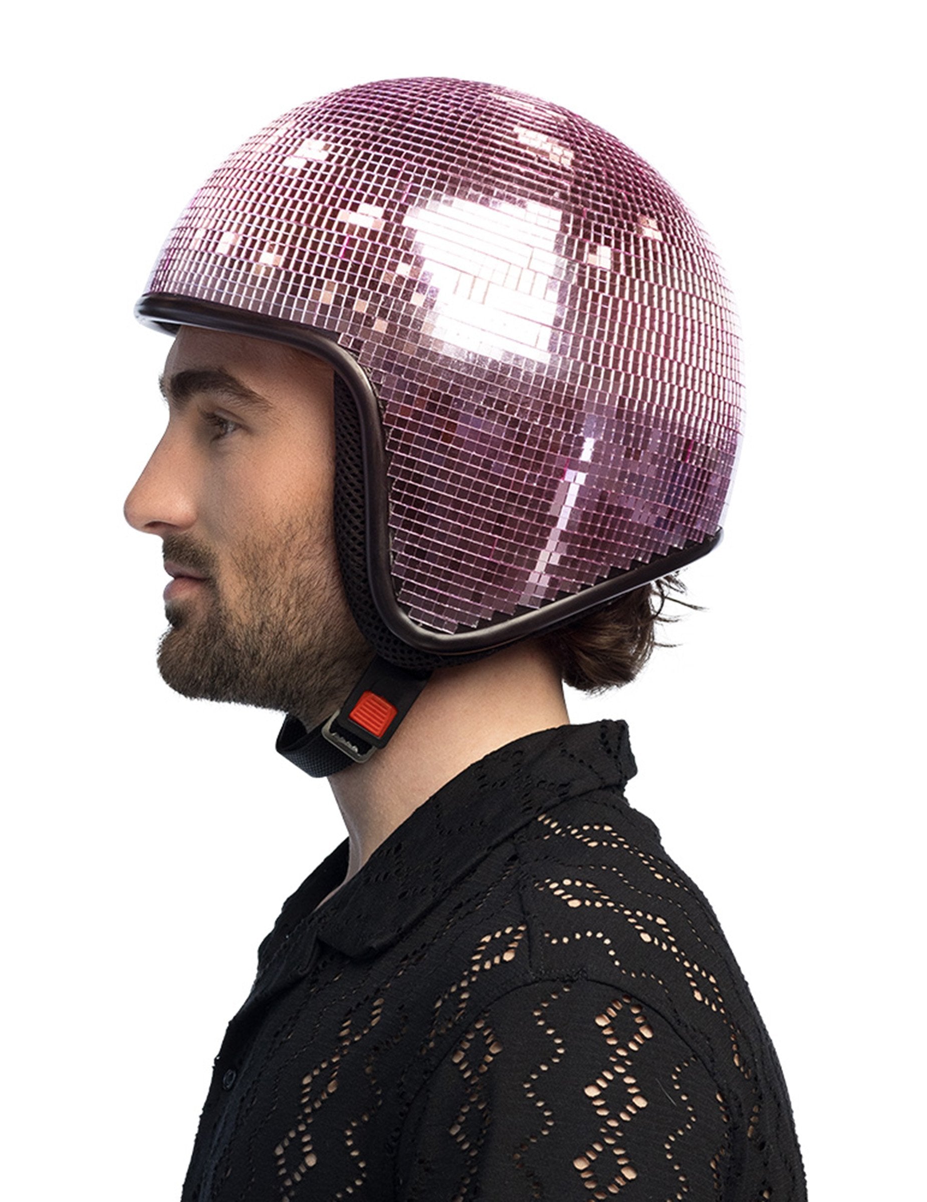 Adj egy csillogó érintést az estéidhez ezzel a rózsaszín diszkógömb sisakkal. Ragyogó és ünnepi, visszaveri a fényt, így látványos hatást kelt, akárcsak a legnagyobb táncparketteken.
