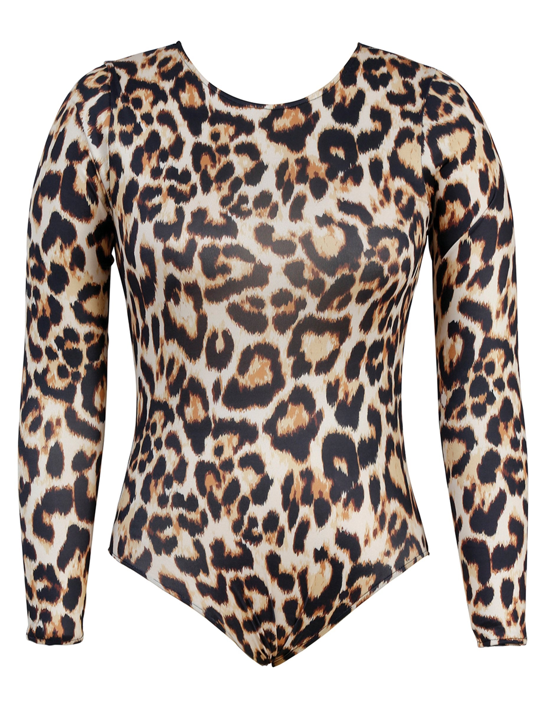 Légy merész ezzel a hosszú ujjú, leopárdmintás bodyval, amelyet tánchoz, kabaréhoz vagy bulis estékre terveztek. Testhezálló szabása kiemeli az alakot, míg az állatmintás stílus erőteljes és ellenállhatatlan megjelenést biztosít. Tökéletes jelmez, hogy kifejezd a vad és csillogó oldalad akár a színpadon, akár egy ünnepi eseményen.