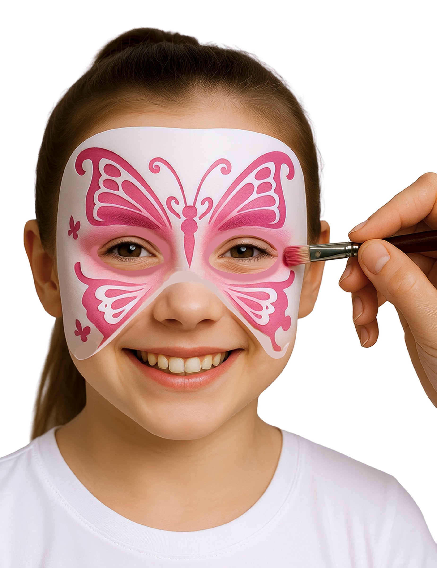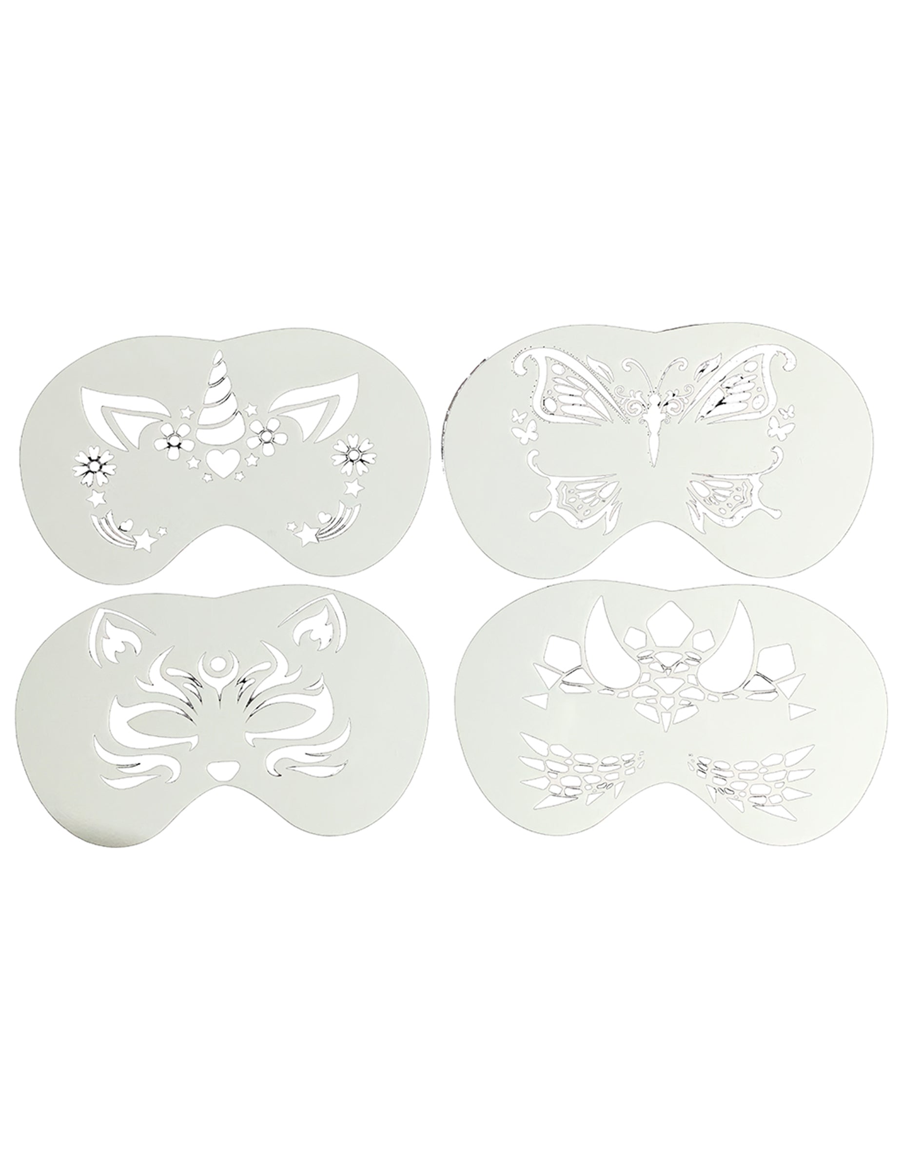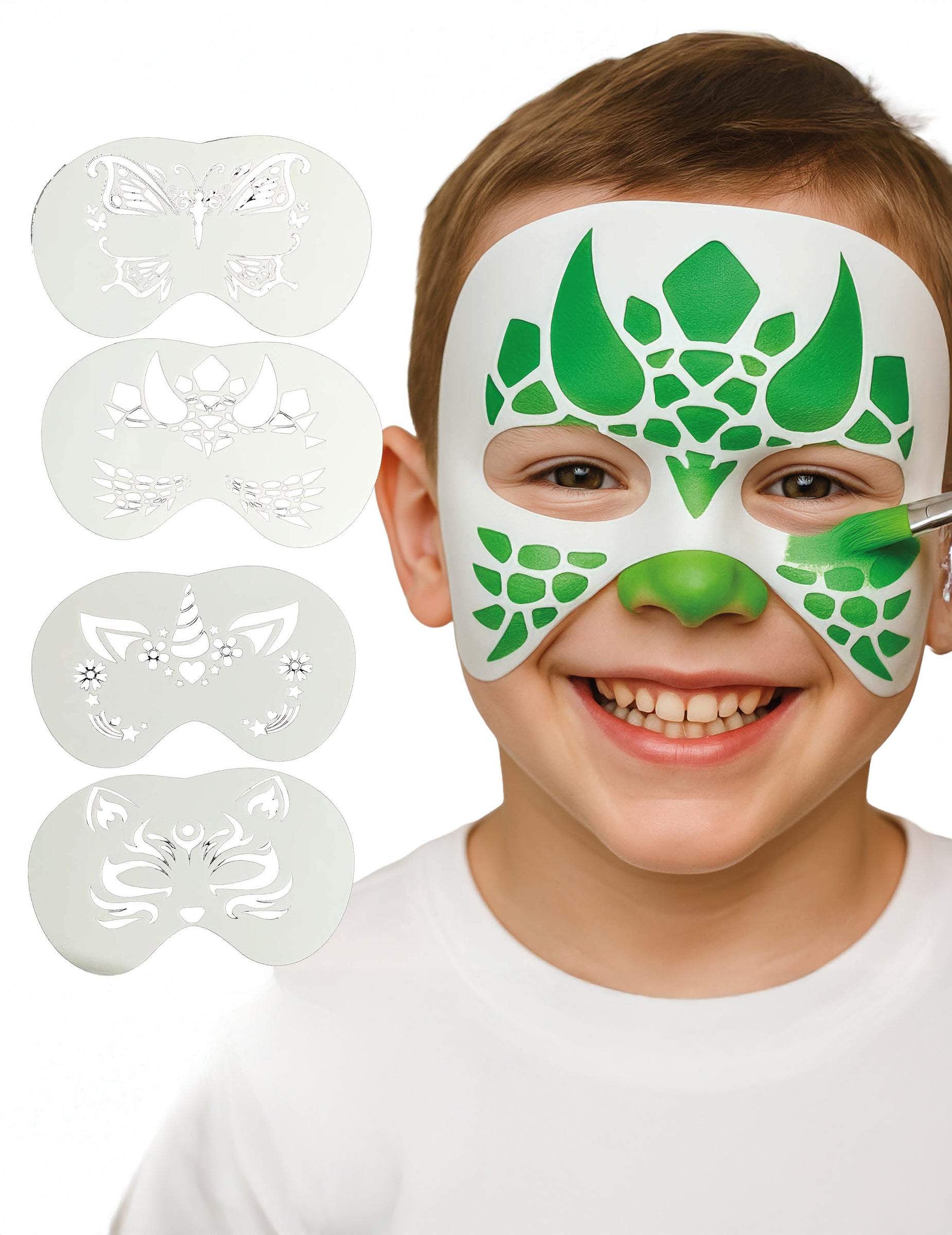 Ez a készlet négy, kifejezetten gyerekeknek tervezett, újrafelhasználható sablont tartalmaz. Segítségükkel gyorsan készíthetsz eredeti arcfestési mintákat sárkány/dinoszaurusz, pillangó, unikornis és macska formájában. Precíz vágásuknak köszönhetően könnyen felvihetők az arcra, és még kezdők számára is tiszta eredményt garantálnak. Tökéletesek születésnapokra, karneválokra, iskolai bulikra vagy Halloweenre, ezek a sablonok szórakoztató, gyors és kreatív arcfestést biztosítanak.