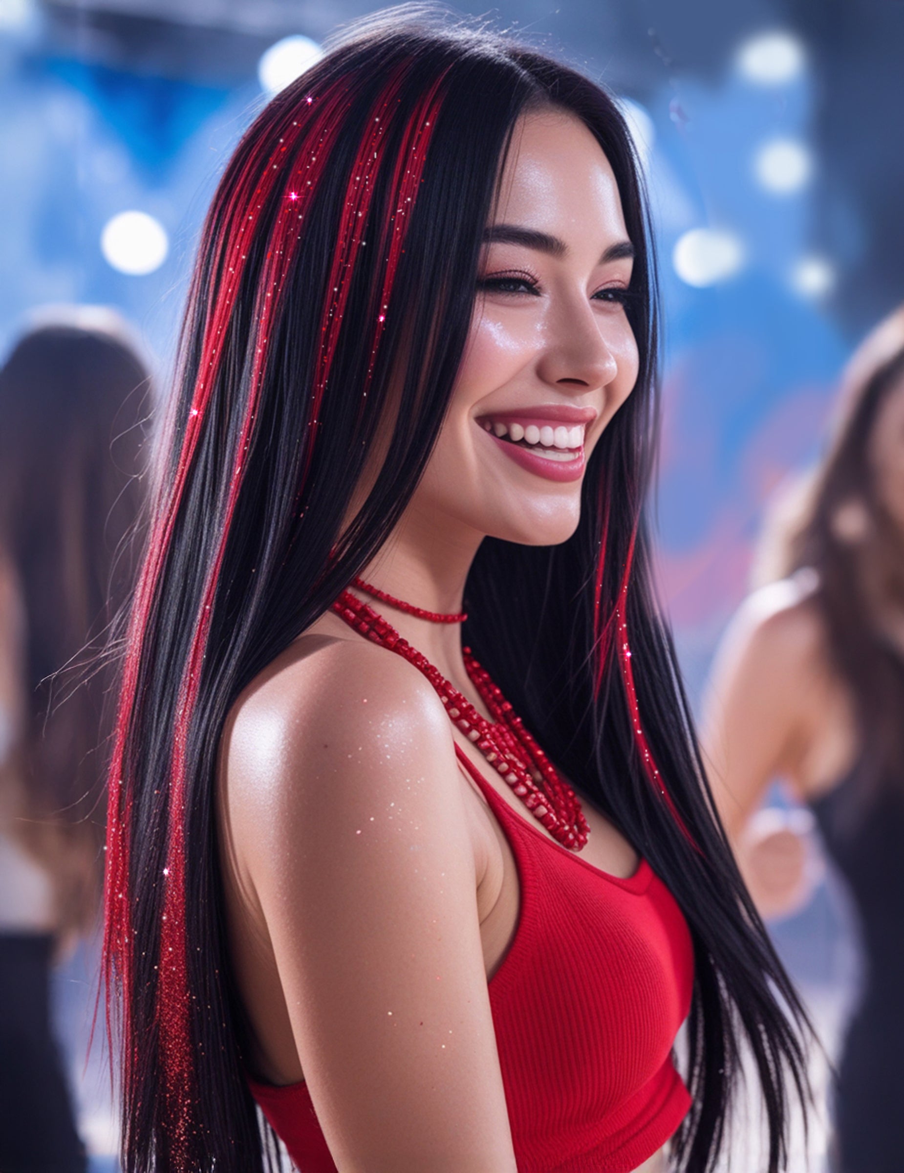 Apportez une touche de lumière et de fantaisie à vos cheveux avec ces 3 mèches brillantes rouges de 50 cm. Faciles à clipser, elles se fixent en quelques secondes et transforment instantanément votre coiffure. Idéales pour les fêtes, soirées, carnavals ou déguisements, elles ajoutent éclat et glamour à votre look. Ces mèches rouges scintillantes sont l’accessoire parfait pour illuminer vos cheveux et attirer tous les regards.