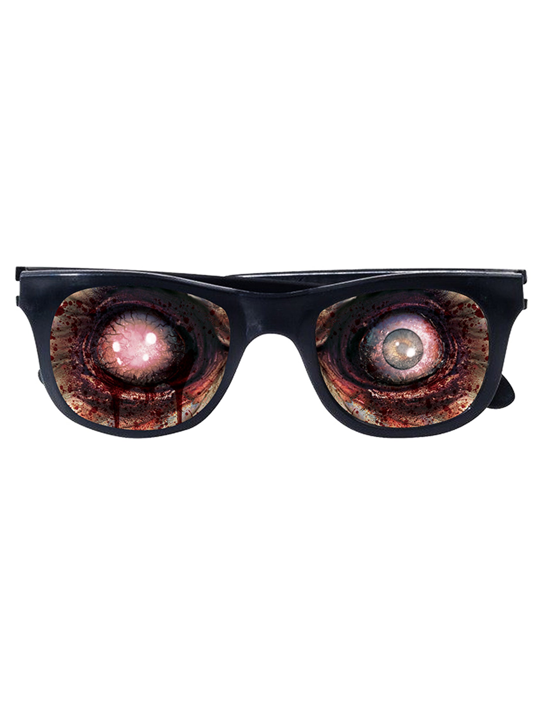 Vel ezek a zombi szemüvegek Felnőttek számára a tekintet azonnal szörnyűvé válik. Első pillantásra egy klasszikus fekete keret, de a matt lencsék mögött két vérben forgó szem rejtőzik, megnagyobbodva és félelmetesen. Az illúzió tökéletes, és minden tekintetet undor és lenyűgözés keverékével vonz.