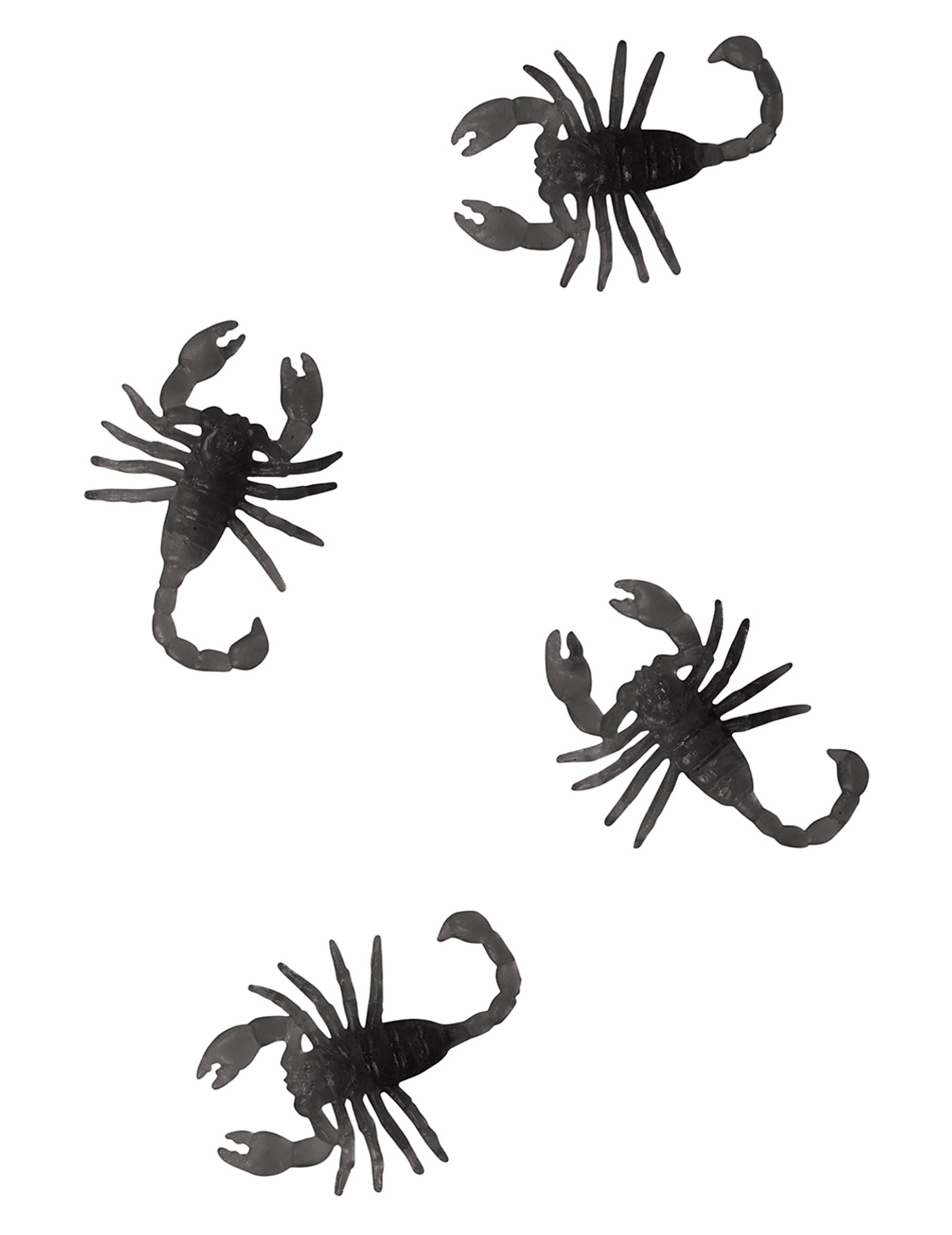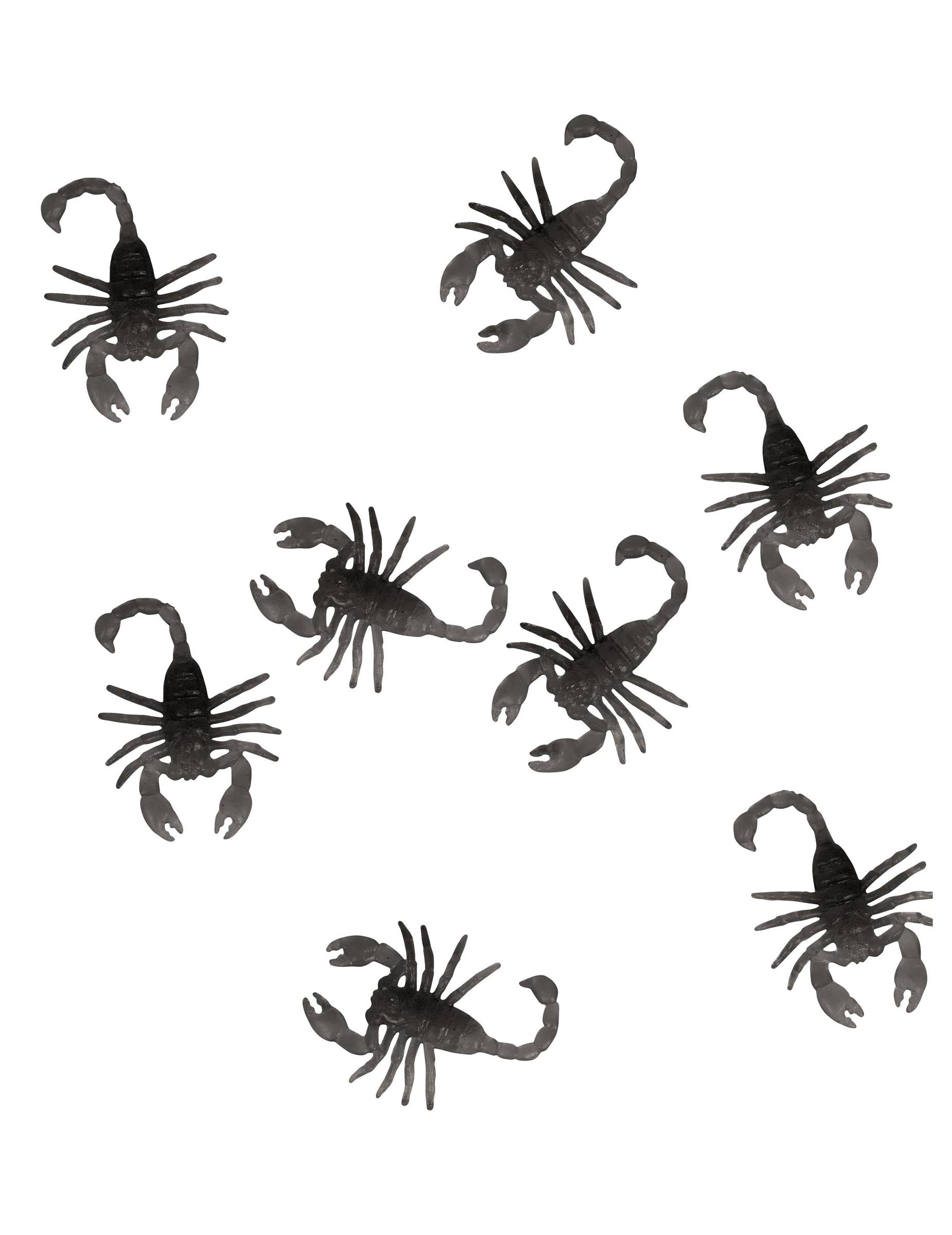 Ez a csomag 8 műanyag kis skorpiót tartalmaz. Ezek a fekete színű műskorpiók körülbelül 6 cm méretűek.