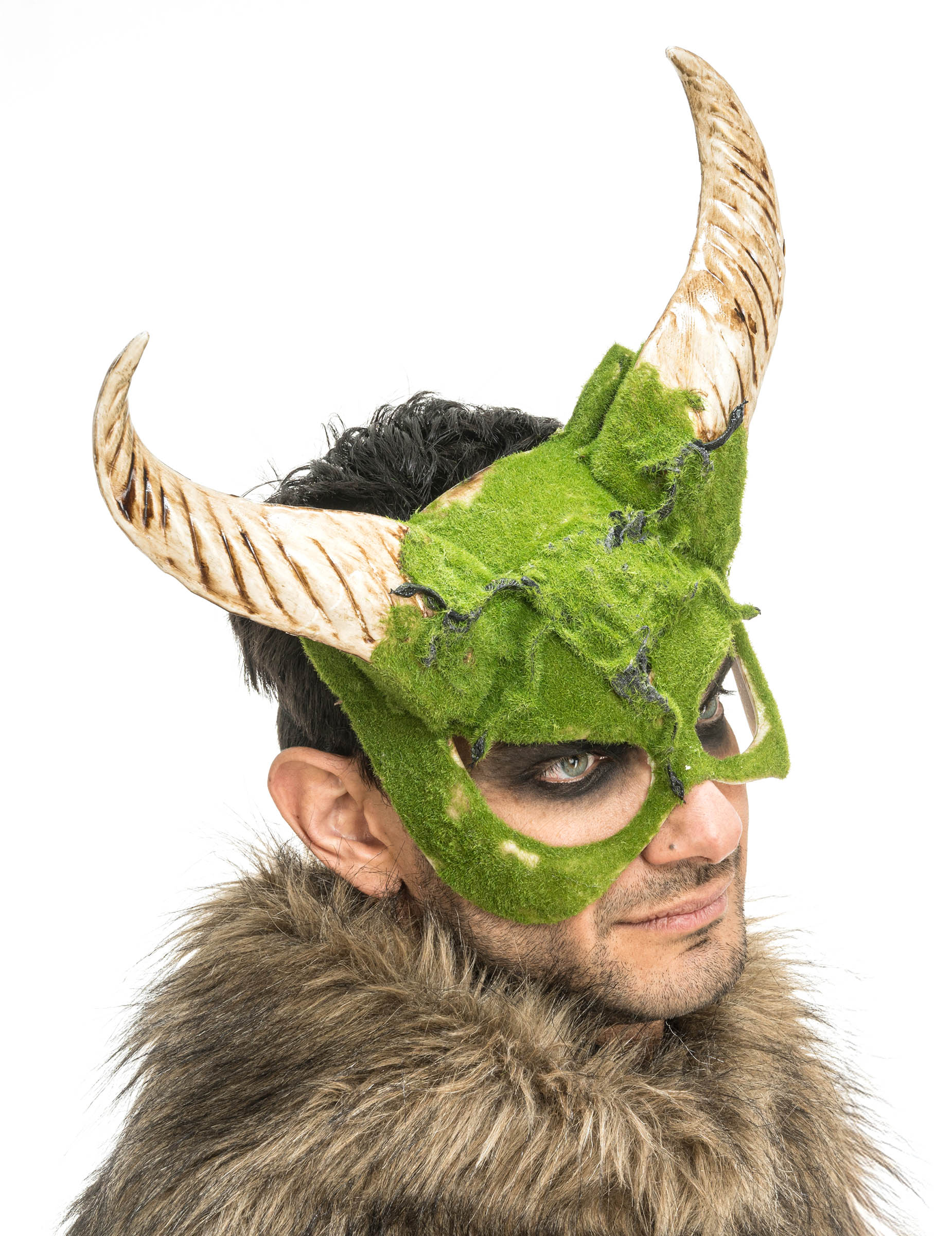 Változz át mitikus lénnyé ezzel a szarvas Bestia félálarccal, amelyet egyedülálló növényi habhatás díszít. Nagy, faragott szarvaival és 34 x 8 x 29 cm méretével lenyűgöző és élethű megjelenést kölcsönöz jelmezeidnek.
