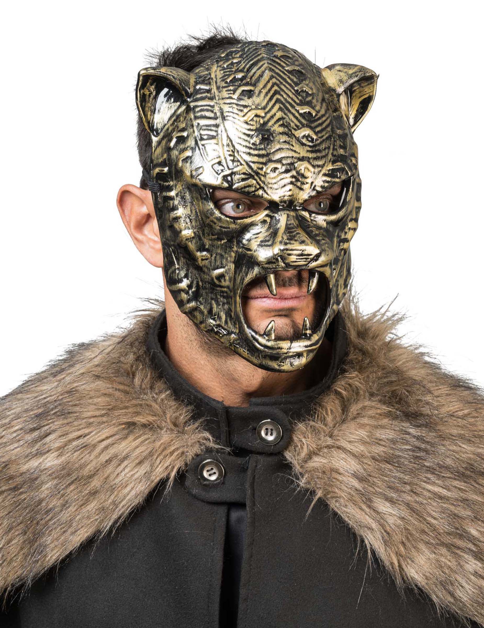 Látható fogakkal és faragott mintákkal ez a maszk egyszerre idézi meg az állati erőt és a misztikus világot. Könnyű és kényelmes, egyszerűen igazítható, így hosszú ideig is viselhető.