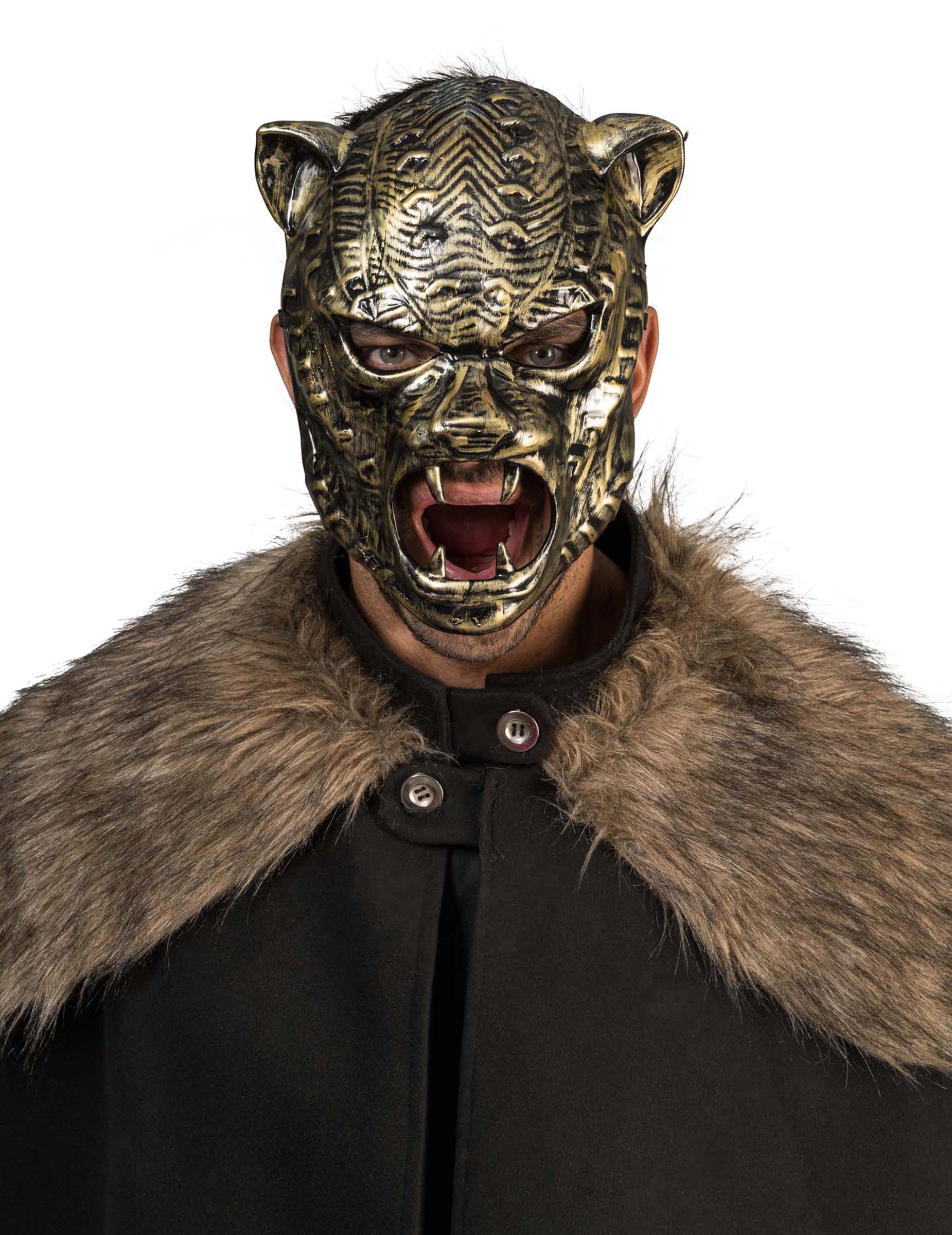 Válj egy félelmetes tigrissé ezzel az Idő Mestere maszkkal, amely lenyűgöző részletekkel és kidolgozott dizájnnal rendelkezik. Mérete 21 x 9 x 27 cm, tökéletesen fedi az arcot, és erőteljes, tekintélyt parancsoló megjelenést kölcsönöz, ami ideális jelmezes bulikhoz, színházi előadásokhoz vagy ünnepi eseményekhez.