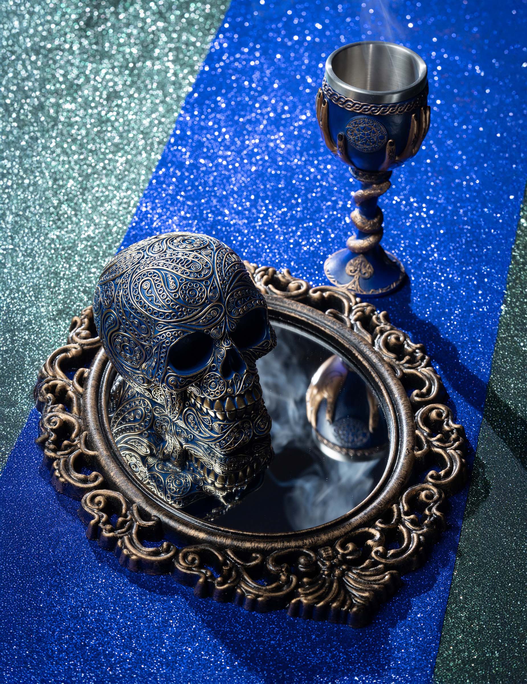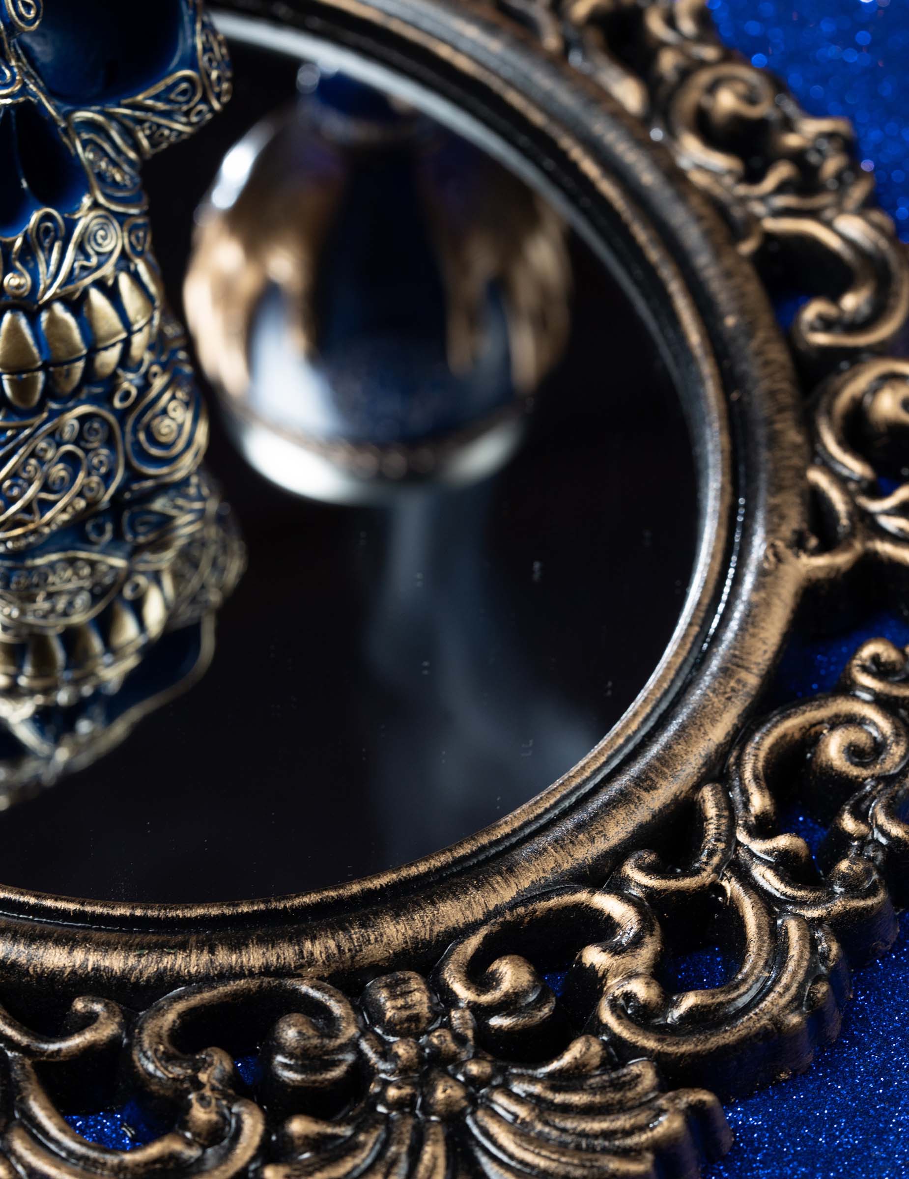 Ez a 40 cm ovális tükör lenyűgöz művészien kidolgozott, fekete és antik bronz színű keretével, amely antik barokk stílust idéz. Kifinomult és színházi hangulatot kölcsönöz dekorációidnak, legyen szó gótikus hangulat megteremtéséről, tematikus helyiség díszítéséről vagy Halloween jelenetek gazdagításáról.