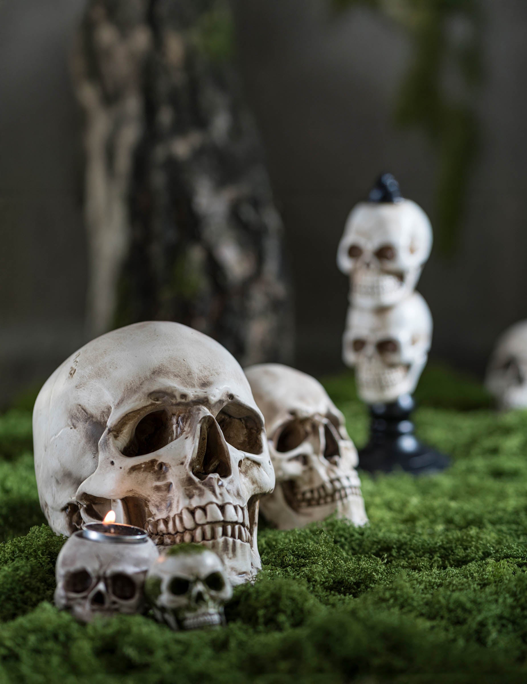 Tökéletes Halloweenre, egy kísértetházba vagy horror dekorációhoz, ez a koponya könnyedén elhelyezhető asztalon, polcon vagy más hátborzongató kiegészítők között, hogy fokozd a hangulatot. Tartós és ellenálló, így évről évre újra felhasználható bulikhoz és tematikus rendezvényekhez.
