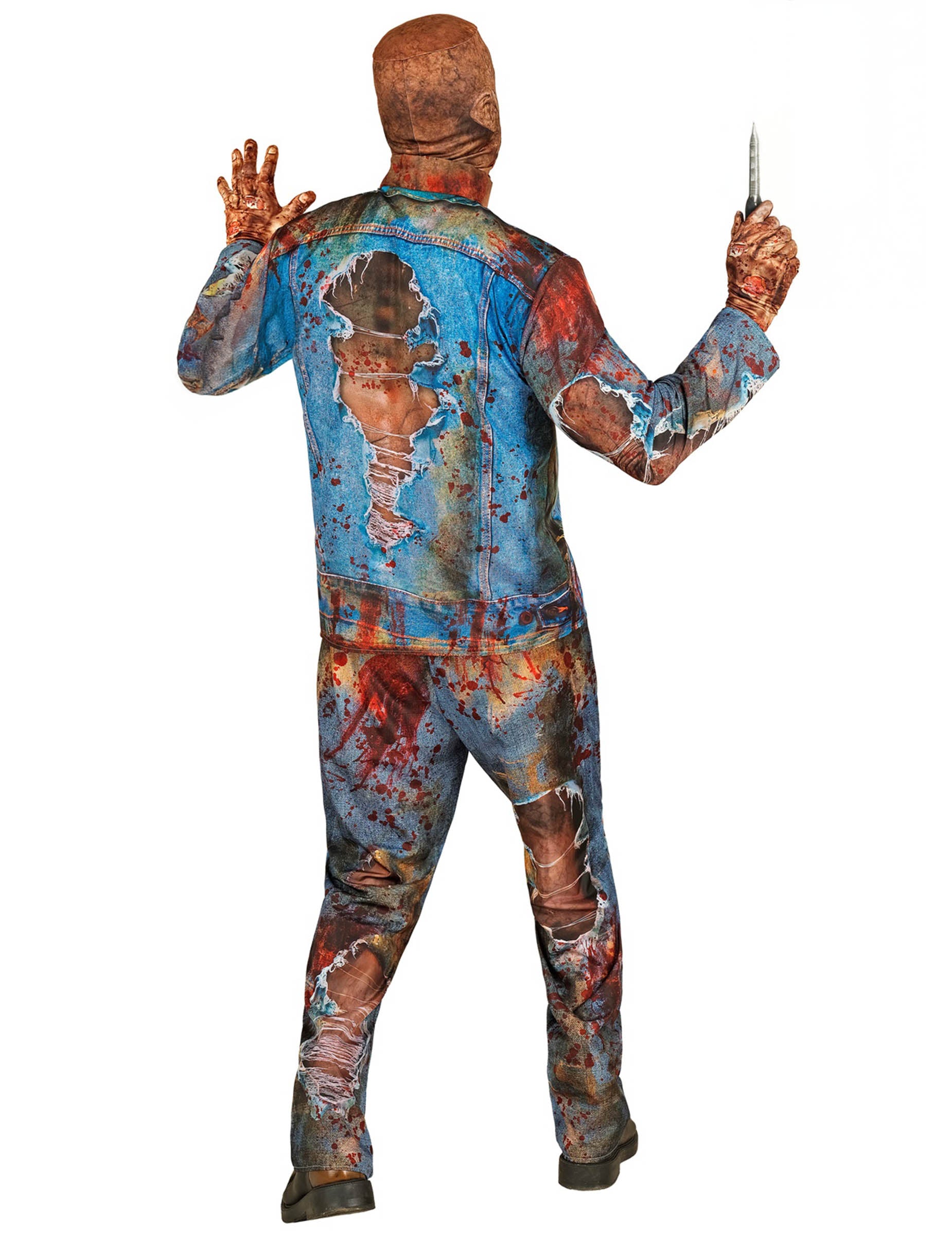 Ezzel a teljes felnőtt zombi jelmezzel egyenesen egy horrorfilmből kiszabadult élőhalottá válhatsz. A szett tartalmaz egy zakót, egy nadrágot, kesztyűket és egy maszkot, mindegyik véres és hátborzongató mintákkal díszítve, nyomtatott anyagból a lenyűgöző hatásért.
