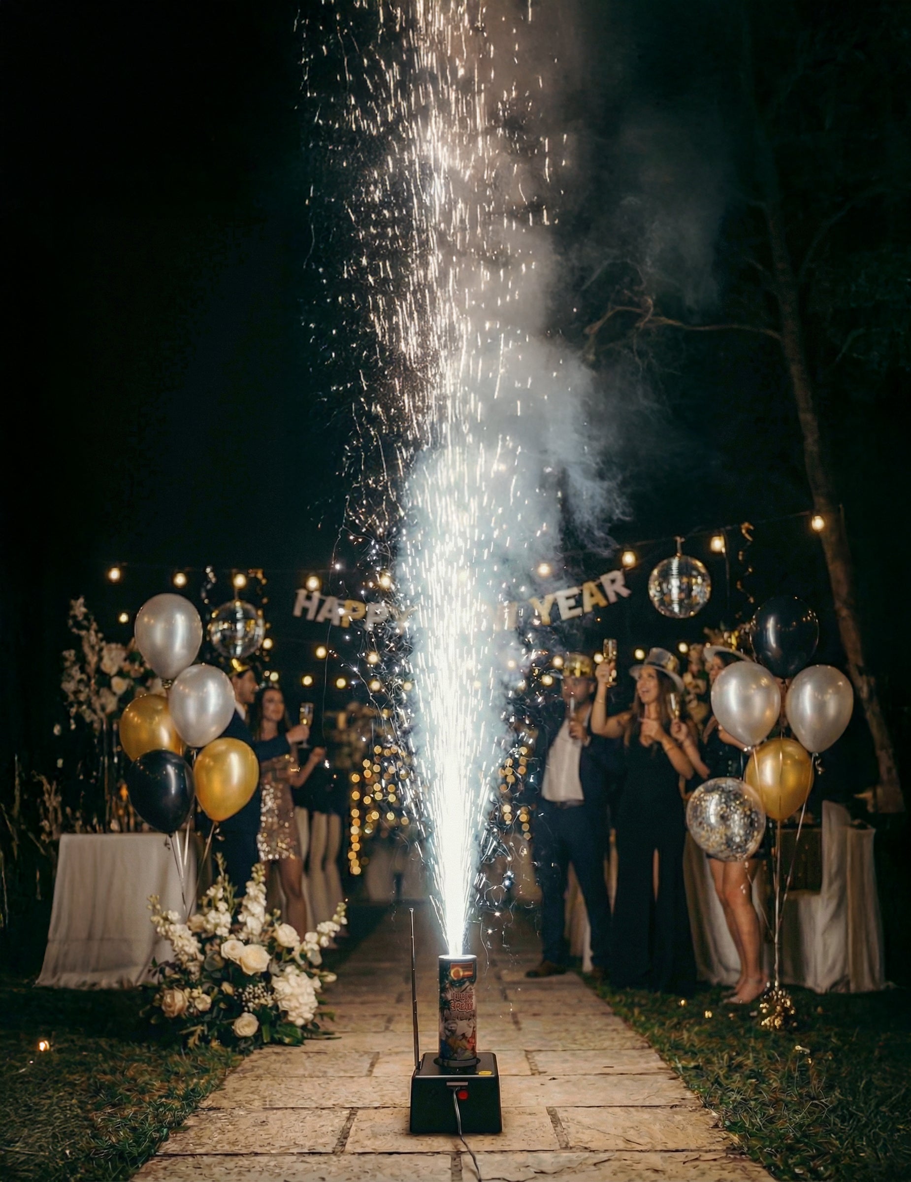 Ez a szikraszökőkút tökéletesen alkalmas olyan alkalmakra, mint egy előadás, szilveszteri bulik, születésnapok vagy kültéri ünnepi rendezvények.