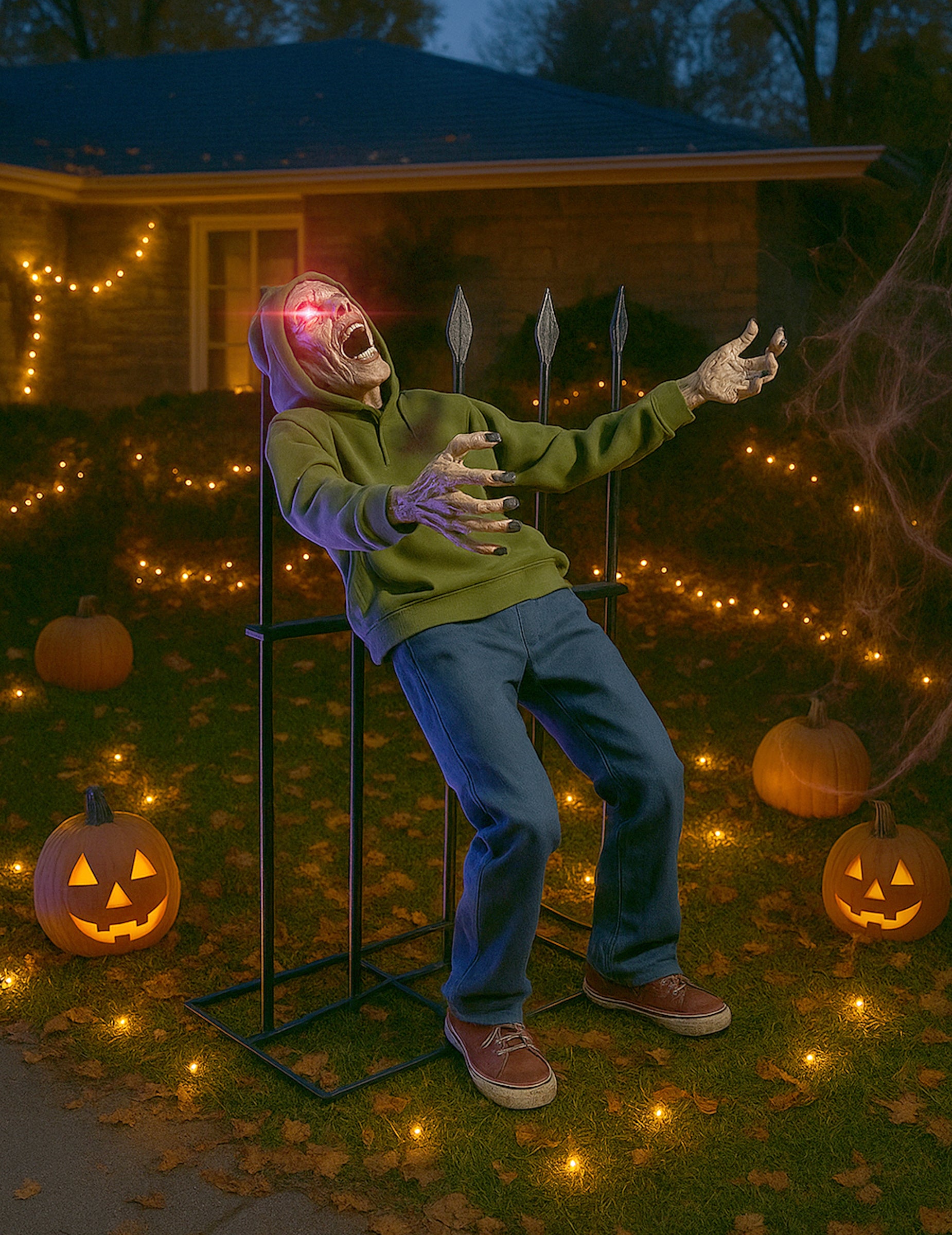 Beépített fényekkel és dermesztő hangeffektekkel felszerelve ez a dekoráció életre kelti a valósághű rémálmot. Könnyen felállítható beltéren vagy fedett kültéren, így garantáltan az ijesztő bulik fénypontja lesz.