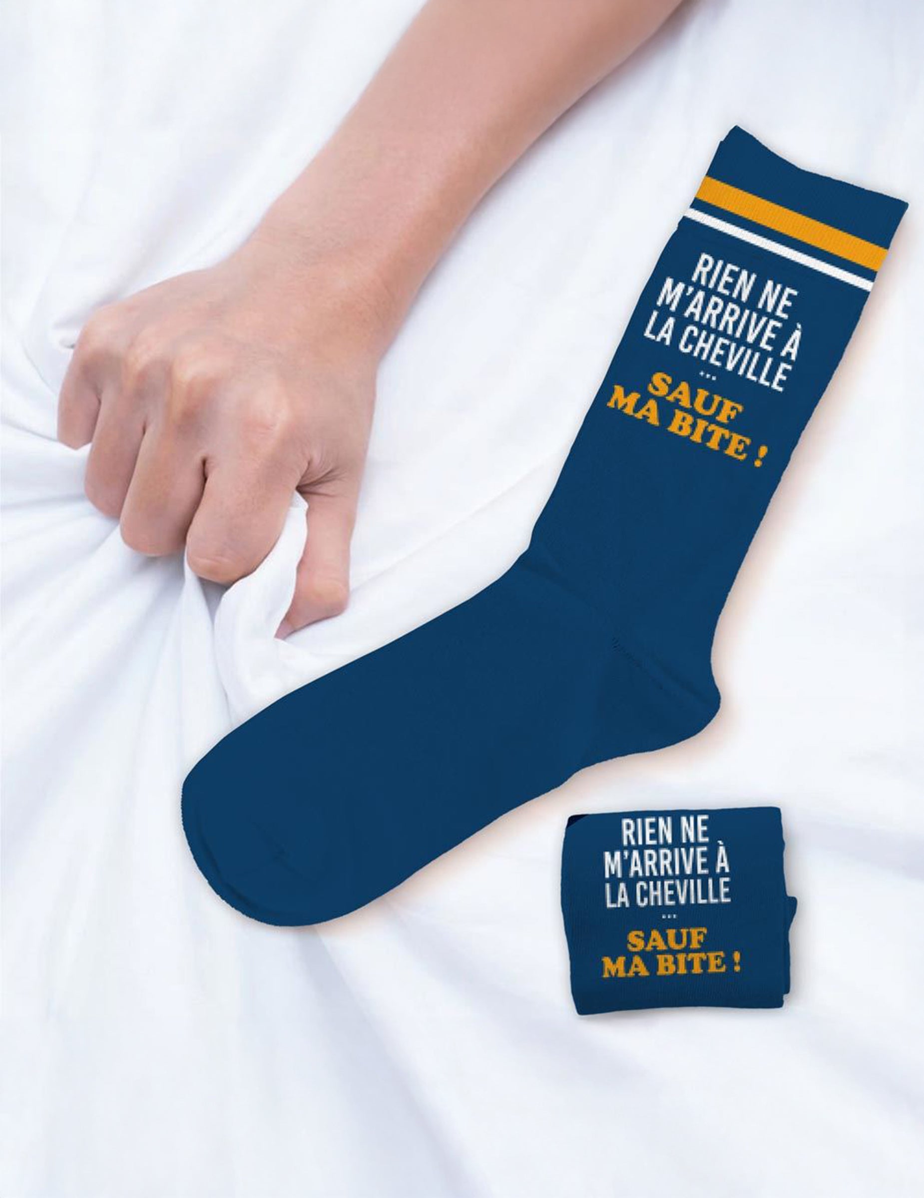 Csalj mosolyt szeretteid arcára ezekkel a humoros, 39-45-ös méretű zoknikkal! Sötétkék színben a "Semmi sem tarthat gyertyát nekem... kivéve a farkamat!" szlogen látható, ami egy vicces és különc dizájn, tökéletes egy humoros ajándéknak. A tetején lévő sárga és fehér csíkok sportos és eredeti hatást kölcsönöznek az egyedi megjelenésnek. Vidám kiegészítő, amit ajándékozhatsz egy barátodnak, kollégádnak vagy szerettednek születésnapra, vicces eseményre, vagy egyszerűen csak egy kis vidámságot az öltözékükbe.