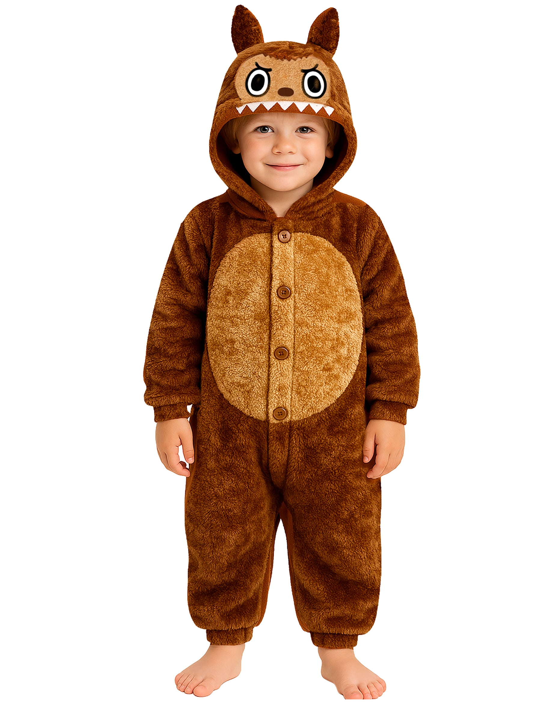 Ez a barna szörny plüss jelmez gyerekeknek a legkisebbeket is egy aranyos, mókás és ölelni való lénnyé varázsolja. Puha és bolyhos anyagból készült, ez az egyberészes jelmez ideális kényelmet biztosít a szabad mozgáshoz és játékhoz.