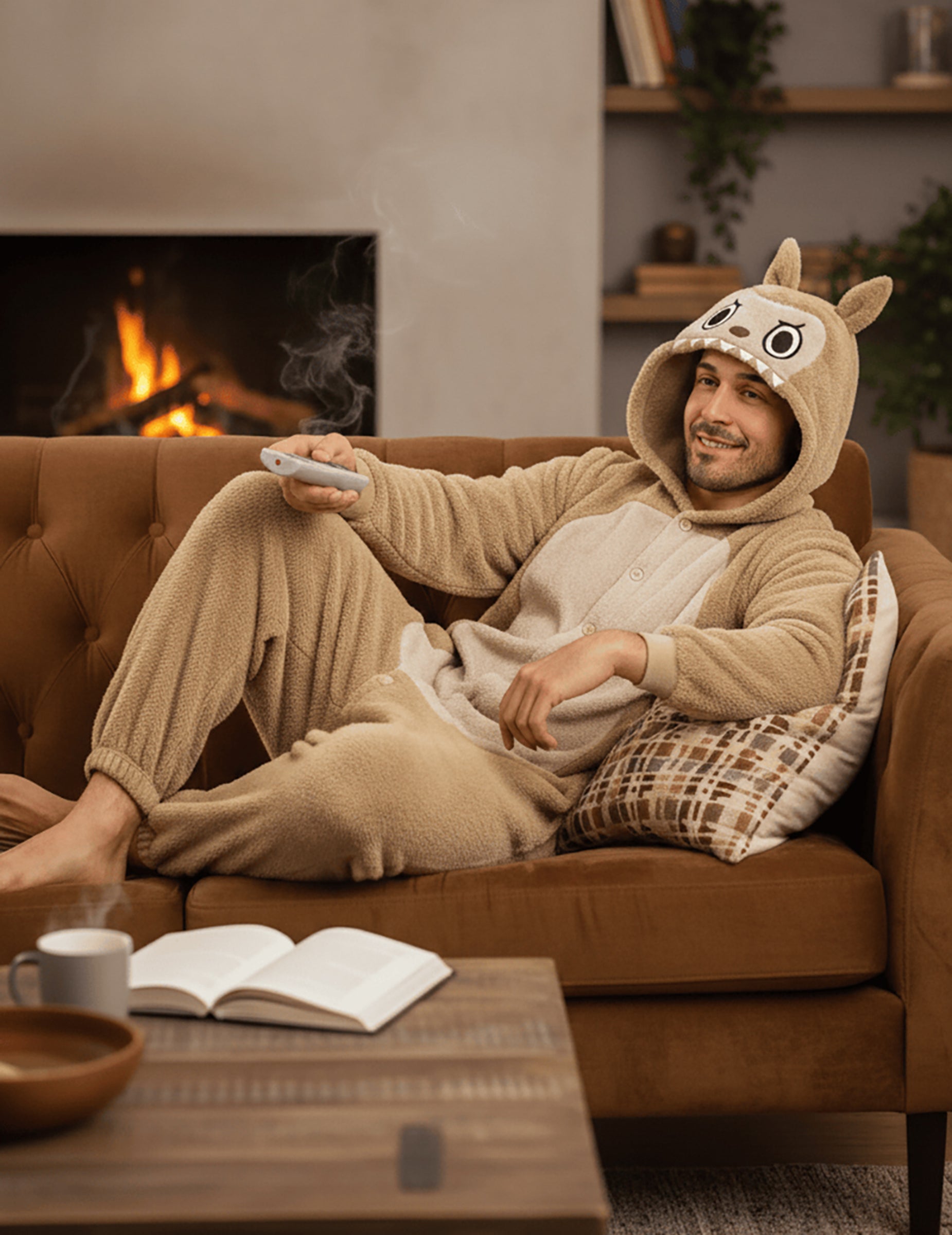 Egy eredeti és kényelmes jelmez, amely ideális farsangra, jelmezes bulira vagy akár csak egy jókedvű, laza pihenéshez.