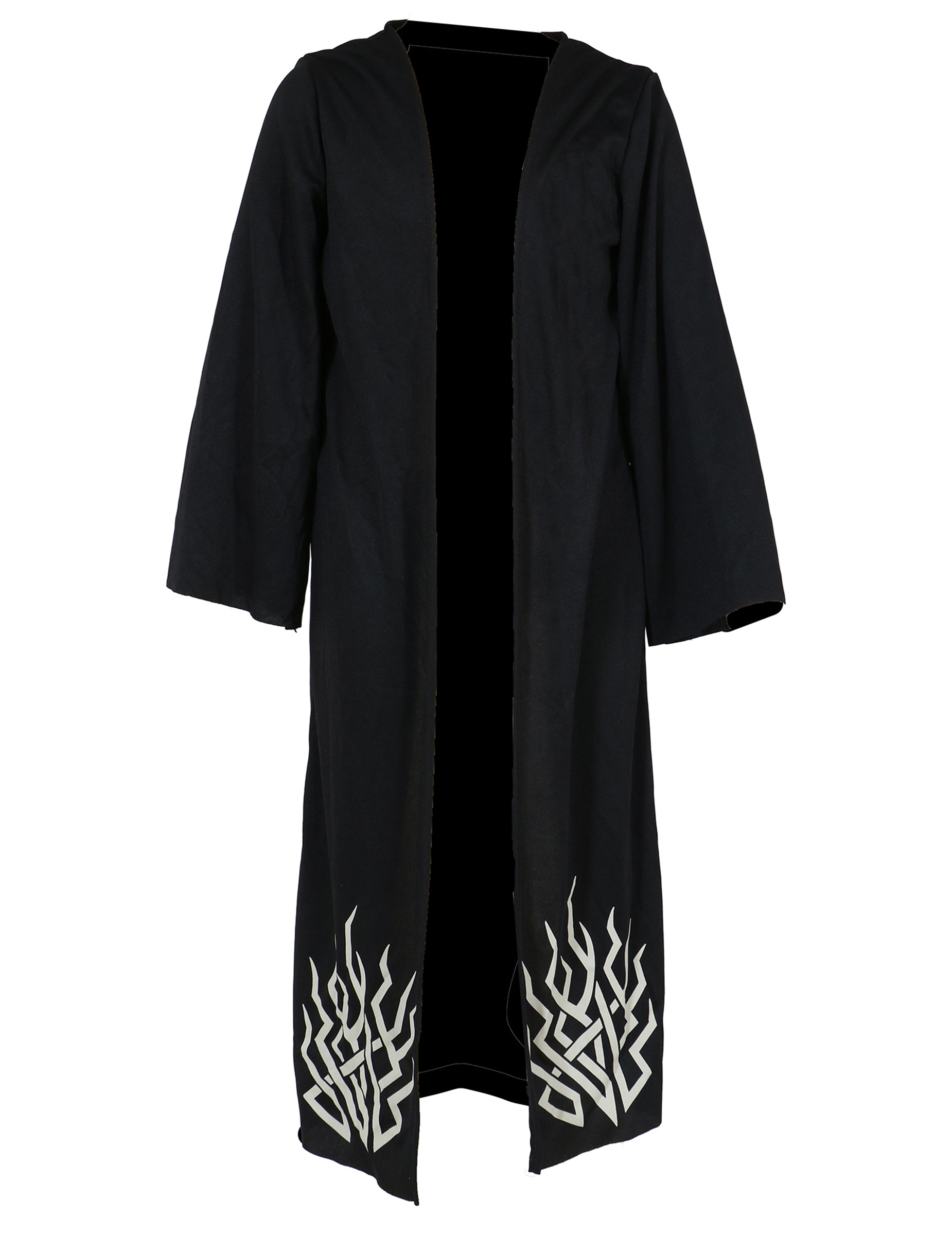 A hosszú, fekete kabátból áll, amelyet lángoló szürke minták díszítenek, így egy természetfeletti lény erejét és sötétségét idézi. A lezser felső egy hozzáillő nadrággal egészül ki, egyenes és fenyegető sziluettet alkotva. Egy élénk piros öv emeli ki a derekat, kontrasztot teremtve a sötét öltözettel, miközben a széles, hagyományos kalap teszi teljessé ezt a megjelenést, amelyet a modern K-Pop alkotásokban látható legendás démonok inspiráltak.