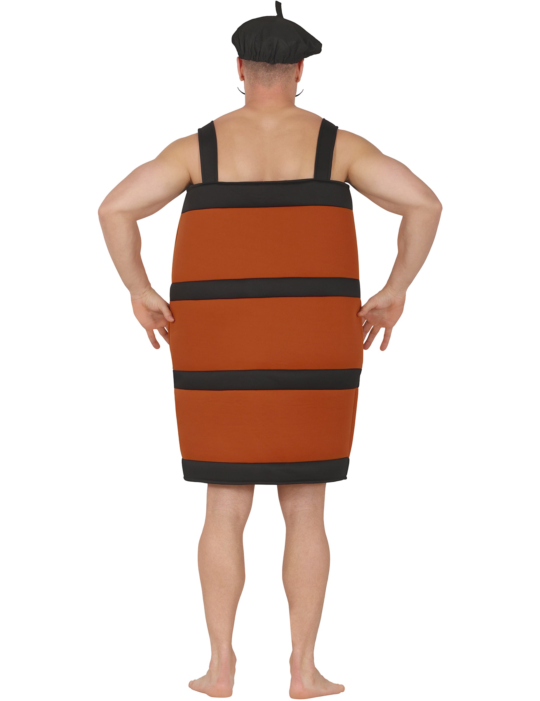Ez a humoros boroshordó jelmez felnőtteknek ideális választás, hogy barátságos hangulatot vigyen az estékre. A barna hordó formájával, fekete abroncsaival és ezüstszínű áldugóival vidáman és eredetien idézi meg a bor világát.