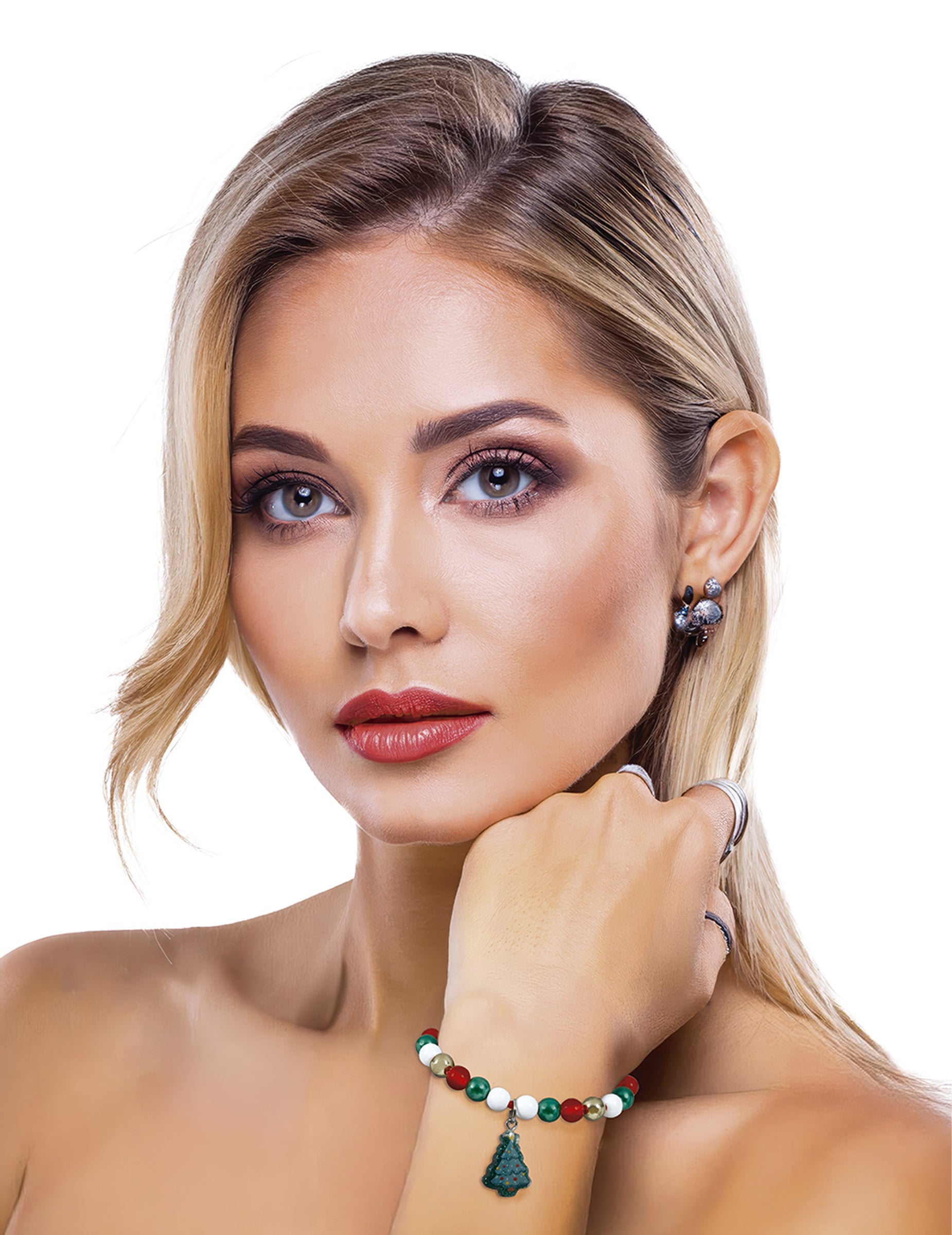 Ez a karácsonyfa karkötő tökéletes kiegészítője az ünnepi öltözékednek. Piros, zöld, fehér és arany gyöngyökből készült, egy kis, díszített fa medállal, amely vidám és színes hatást kelt. Egy állítható piros zsinórra rögzítve könnyedén illeszkedik minden csuklómérethez. Tökéletes arra, hogy vidám és vidám hangulatot kölcsönözz a karácsonyi ünnepségeknek, akár otthon, az irodában, akár egy ünnepi étkezés során.