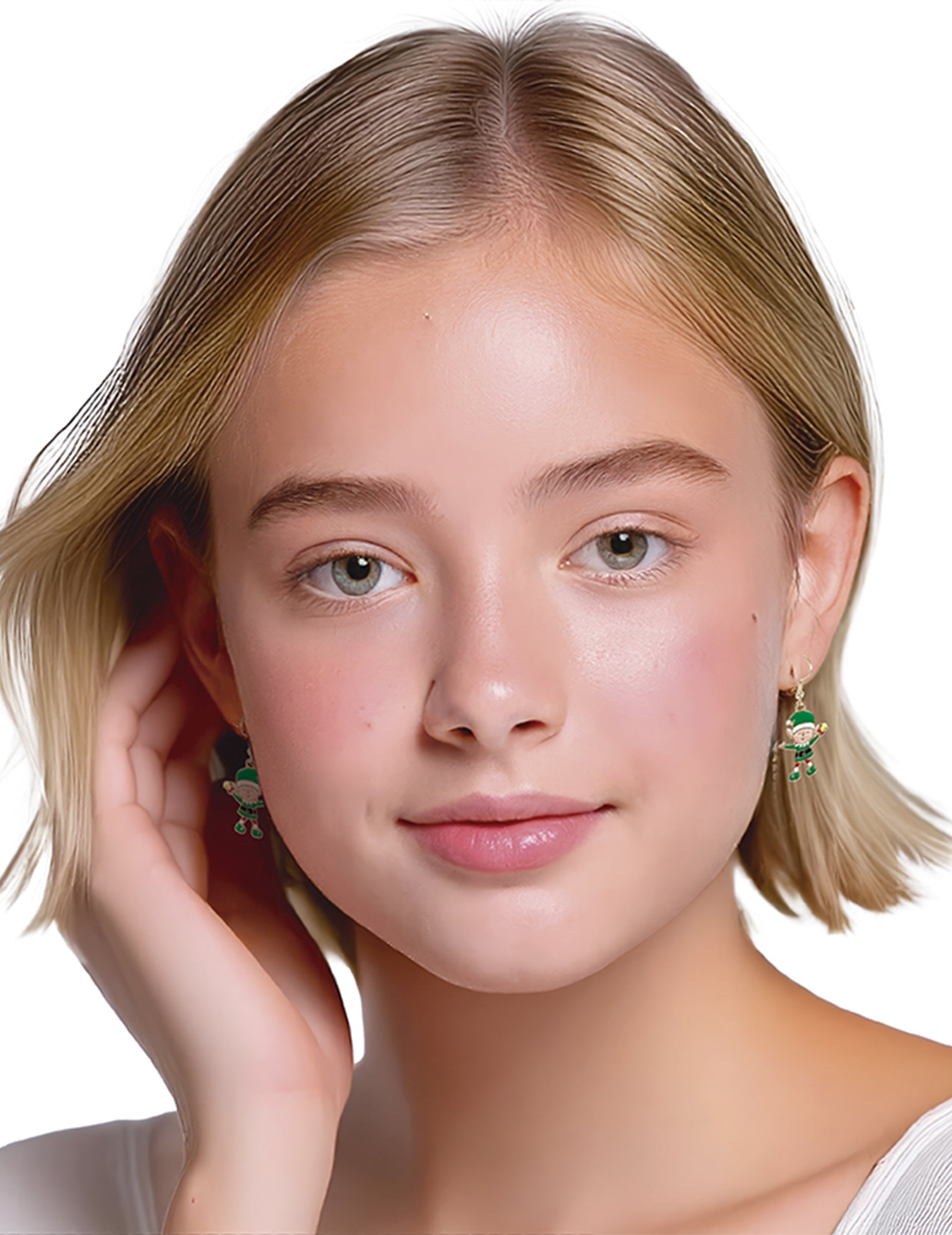 Ezek a karácsonyi manó fém fülbevalók vidám és csillogó hangulatot kölcsönöznek ünnepi öltözékednek. Minden medál egy kis, zöld és piros ruhás, boldog manót ábrázol, a szezon jellegzetes színeiben. Könnyű, aranyszínű kialakításuk minden lépésnél szépen mozog, magára vonva a fényt és a tekinteteket. Tökéletes választás karácsonyi vacsorákhoz, bulikhoz vagy akár a mindennapi öltözéked ünnepi feldobásához is.