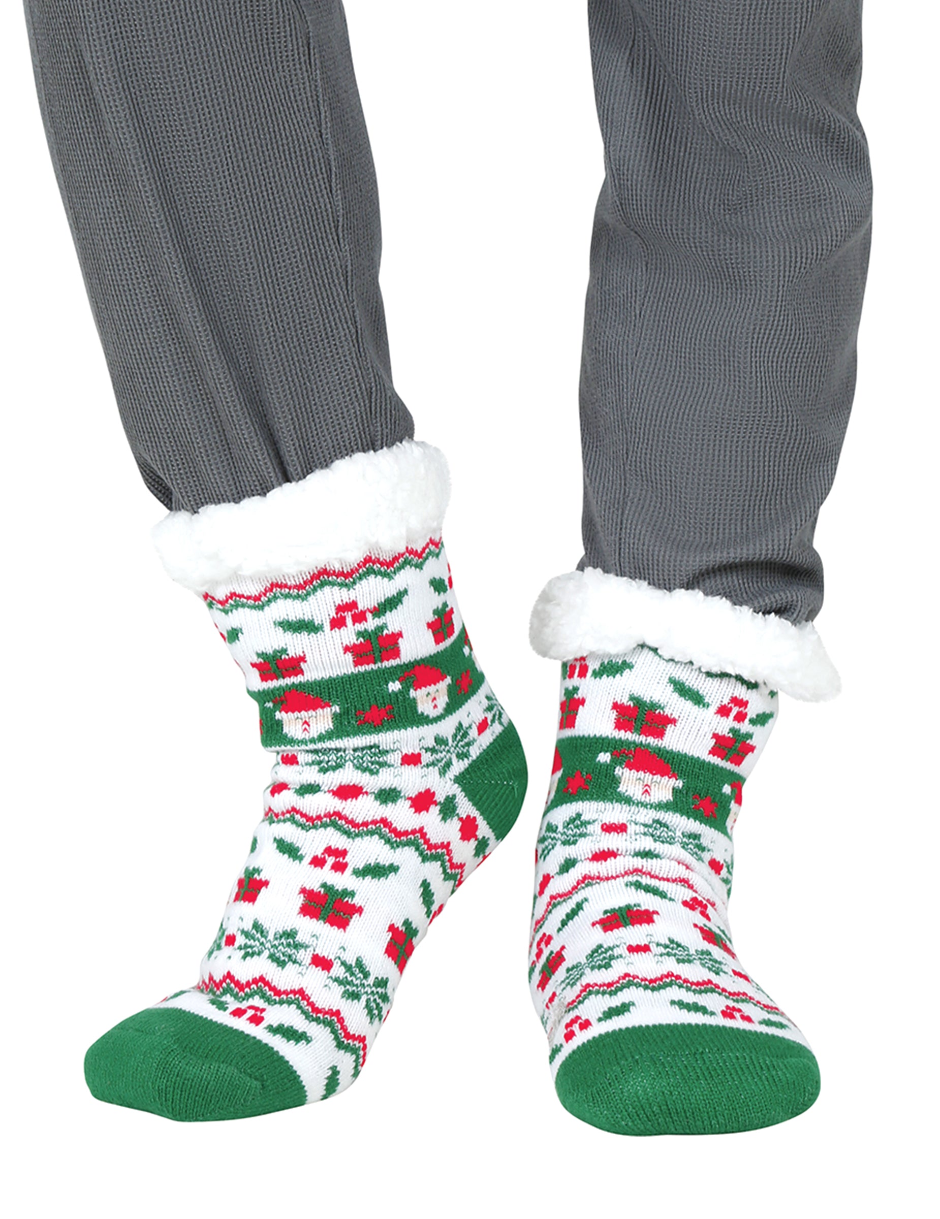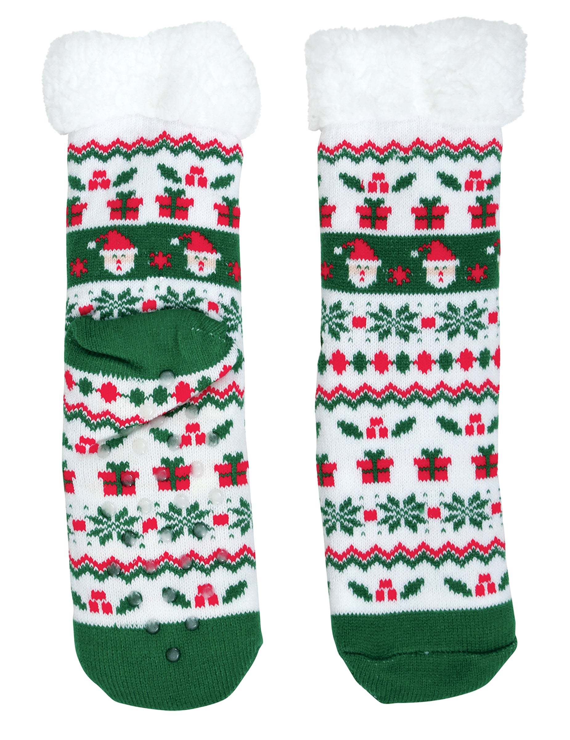 Ezek a fehér és zöld, felnőtteknek készült karácsonyi thermo zoknik tökéletesek ahhoz, hogy stílusosan nézz szembe a hideggel. Színes mintáik – fenyőfák, hópelyhek és ajándékok – a karácsonyi ünnepek varázsát idézik, miközben a fehér műszőrme szegély extra kényelmet és meleget nyújt. Puha, bolyhos és ünnepi darabok, melyek meghitt pillanataidat kísérik, miközben vidám hangulatot visznek téli öltözékedbe.
