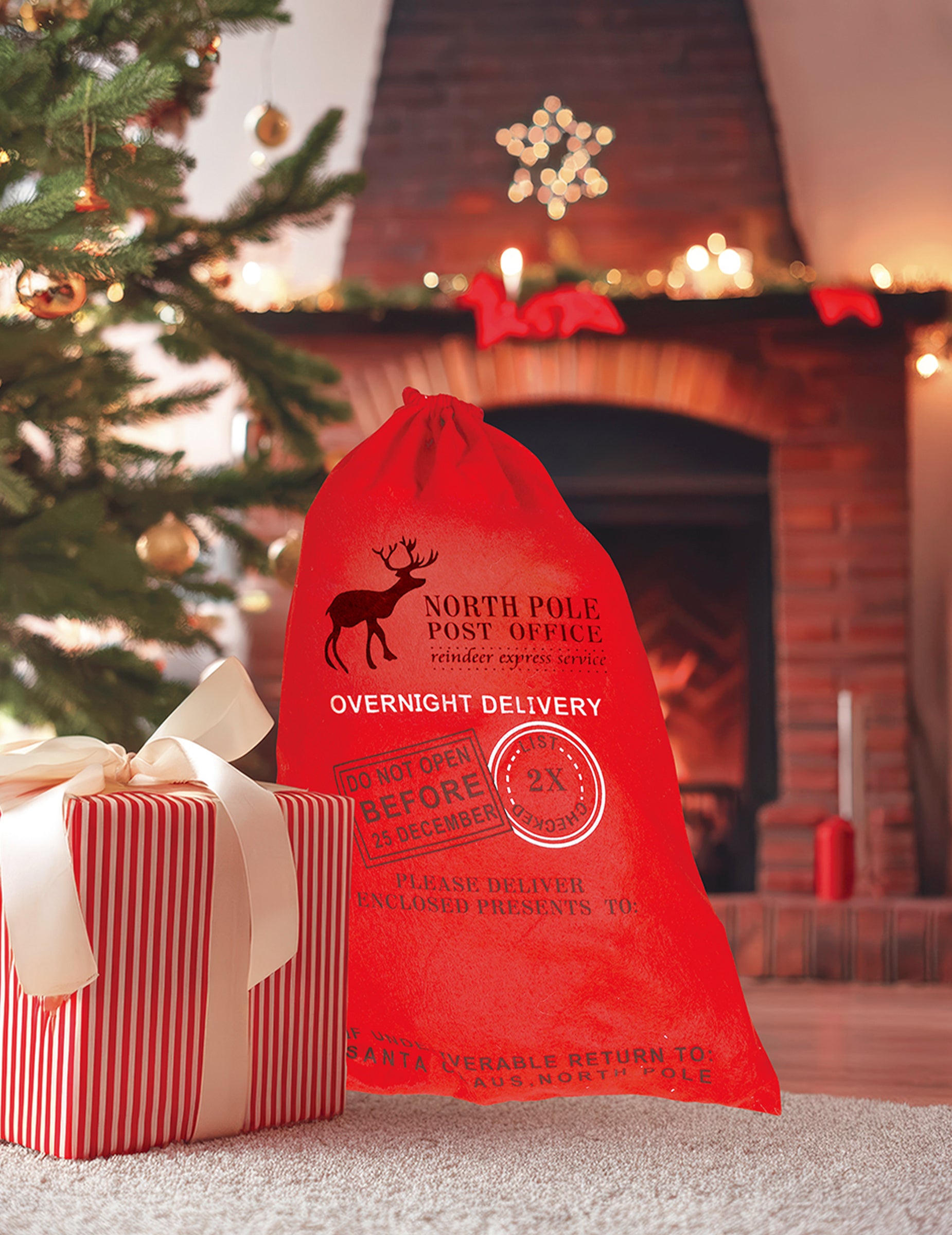 Ez a piros mikulászsák 65 x 45 cm-es. cm Ez a doboz tökéletes ajándékok hordozására vagy a fa alá helyezésére. Az "Északi-sarki postahivatal" dizájnnal díszítve a híres piros ruhás férfi expressz kézbesítéseit idézi. Praktikus és tágas méretének köszönhetően rengeteg ajándékot csúsztathatsz bele, így hiteles és ünnepi hangulatot teremthetsz a fa alatt.