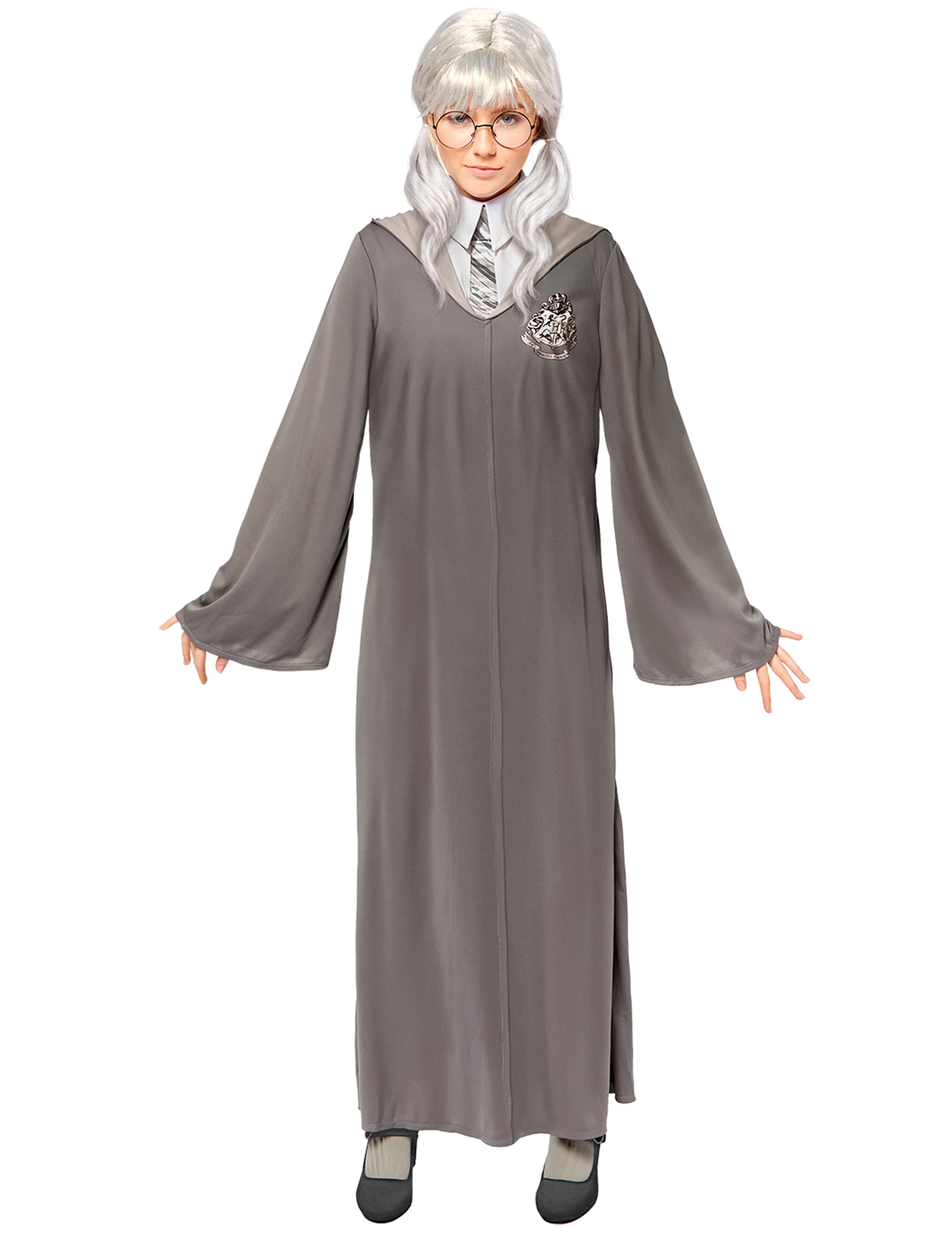 Ez a Nyögdécselő Mirtusz Harry Potter női jelmez tökéletesen újraalkotja a híres Hollóhát szellemének titokzatos stílusát. A hosszú, lenge szürke ruha, enyhén bő ujjakkal, tökéletesen idézi a karakter éteri vonzerejét. Díszes gallérja és címere a Hollóhát ház ikonikus hangulatát adja. Tökéletes viselet, hogy Mirtusz helyébe lépj egy Harry Potter témájú partin vagy egy varázslatos jelmezbálon.