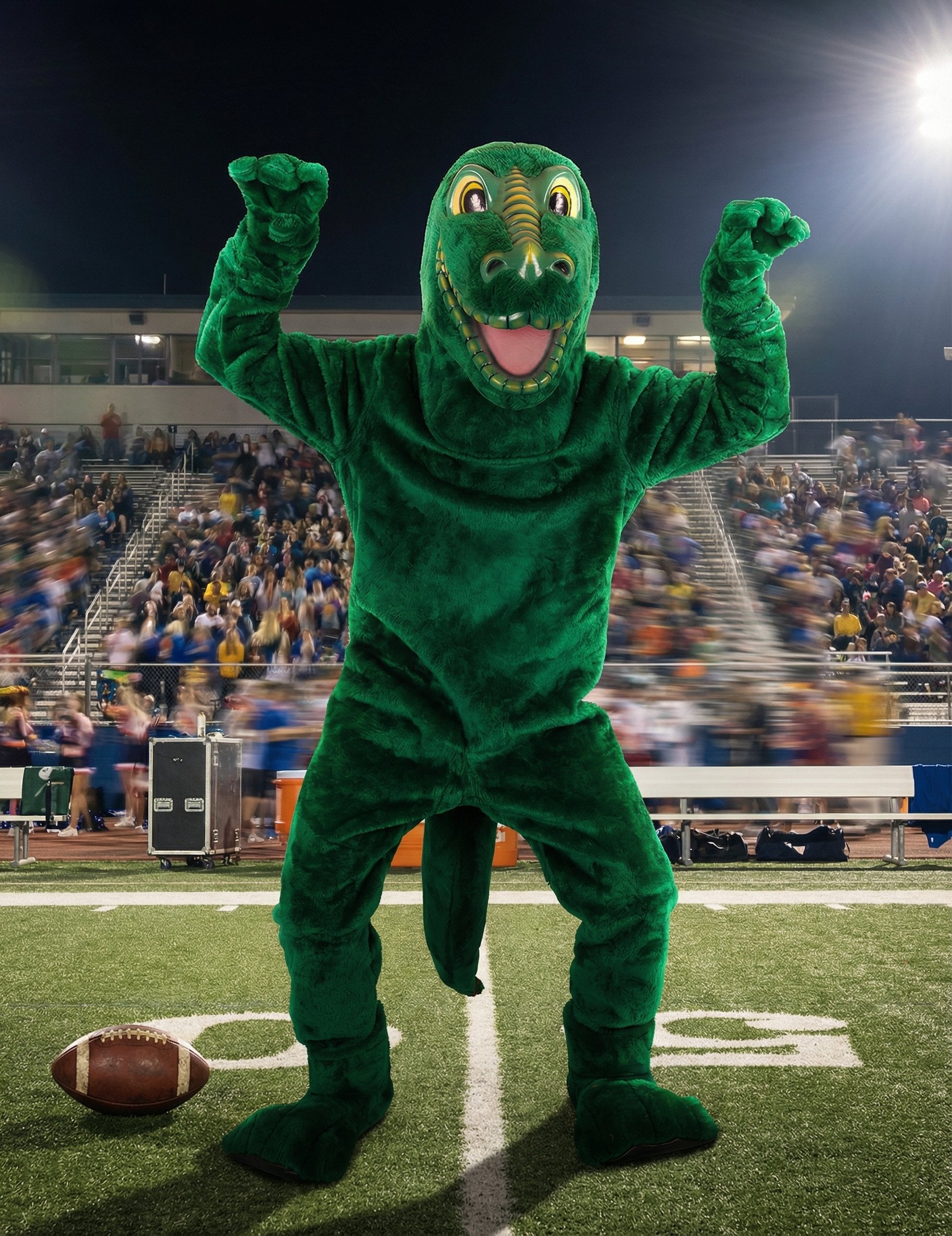 Ez a felnőtt dinoszaurusz kabala jelmez tartalmaz egy puha overált és egy nagy, mosolygós maszkot, amely azonnal vidám dinoszaurusszá változtat. A zöld overál zökkenőmentes megjelenést kölcsönöz a testnek, a hátuljához rögzített farok pedig fokozza a hatást. A maszk egy nagy dinoszauruszfejet ábrázol kifejező szemekkel és széles szájjal. A kezek és lábak integrálva vannak, hogy tetőtől talpig egységes sziluettet alkossanak. Tökéletes kabala jelmez, amely felvidít egy karnevált, születésnapi bulit vagy bármilyen ünnepi eseményt.