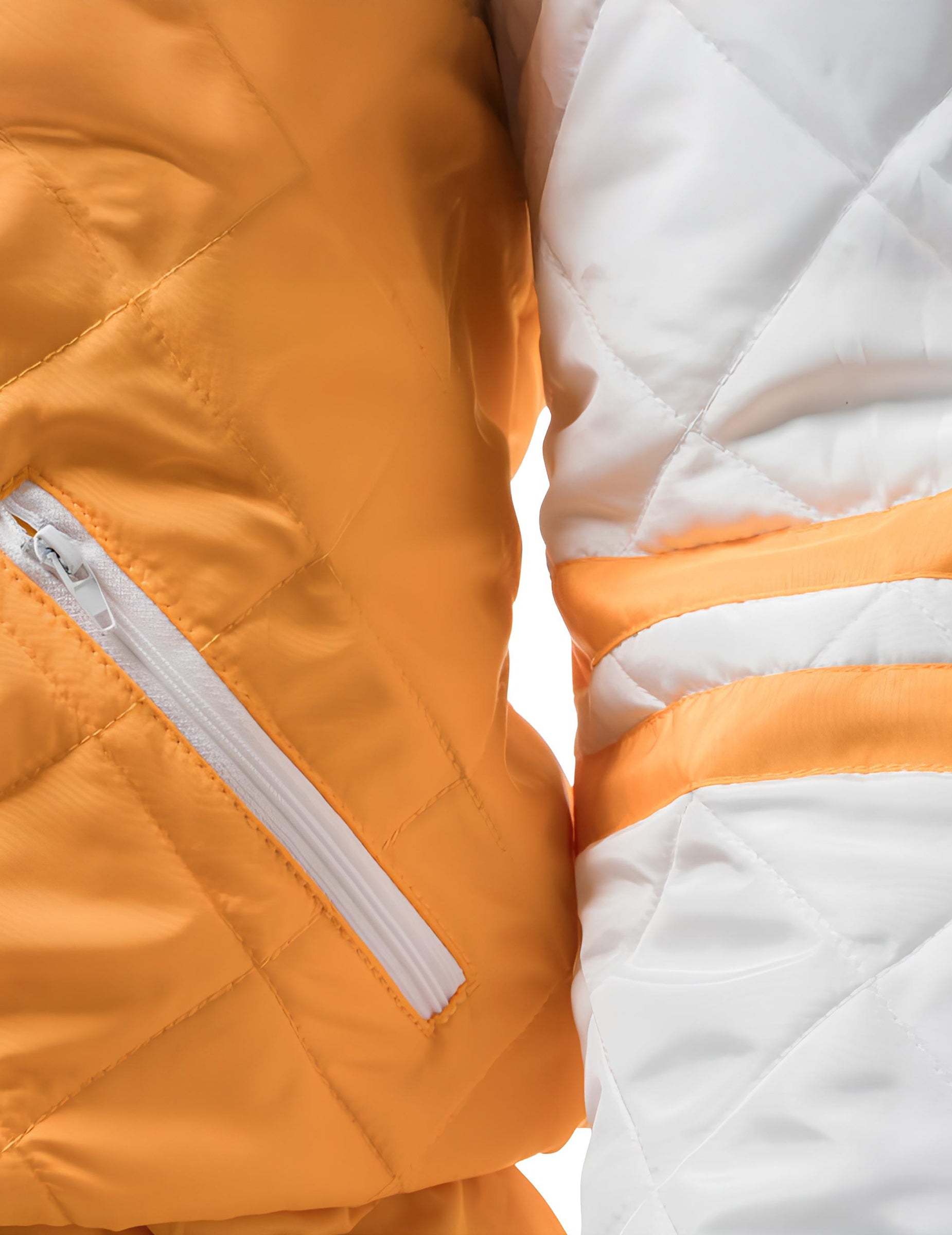 Ez a Jean-Claude Dusse felnőtt síruhás jelmez egy kétszínű, steppelt dzsekit és egy narancssárga nadrágot tartalmaz, amelyek azonnal felidézik a híres film karakterének stílusát. A dzseki narancssárga és fehér színeket ötvöz, nagyon felismerhető dizájnnal, míg a nadrág egységes árnyalatban egészíti ki az összeállítást. Ideális jelmez humoros hangulat megteremtéséhez farsangon, tematikus bulin vagy bármilyen ünnepi eseményen.