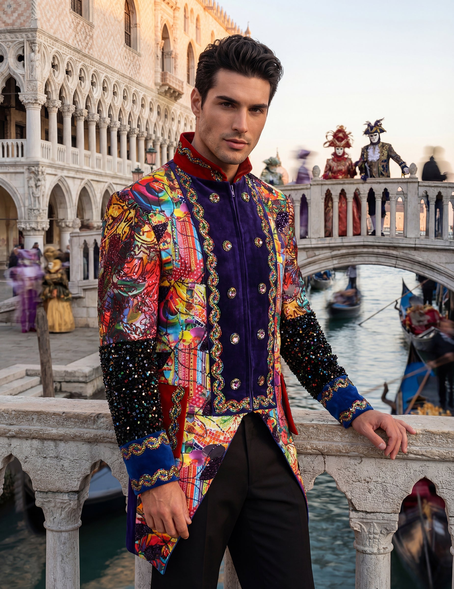 Exkluzív, többszínű, Fiesta Carnival stílusú férfi karneváli dzseki