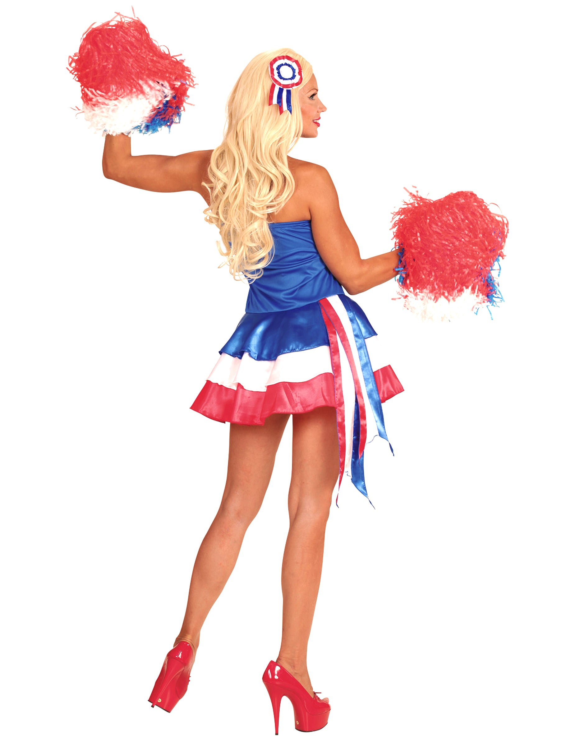 Ez a francia trikolór női szurkolói jelmez ünnepi megjelenést kölcsönöz rövid, kék-fehér-piros színű ruhájával. Az A-vonalú szabás könnyed mozgást ad, míg a kék felsőrész azonnal kiemeli a nemzeti témát. A kokárdával díszített hajcsat teljessé teszi az öltözéket, hangsúlyozva a szurkolói hangulatot. Tökéletes választás Franciaország színeinek viselésére sporteseményeken vagy tematikus bulikon, ez a jelmez vidám és feltűnő megjelenést biztosít.