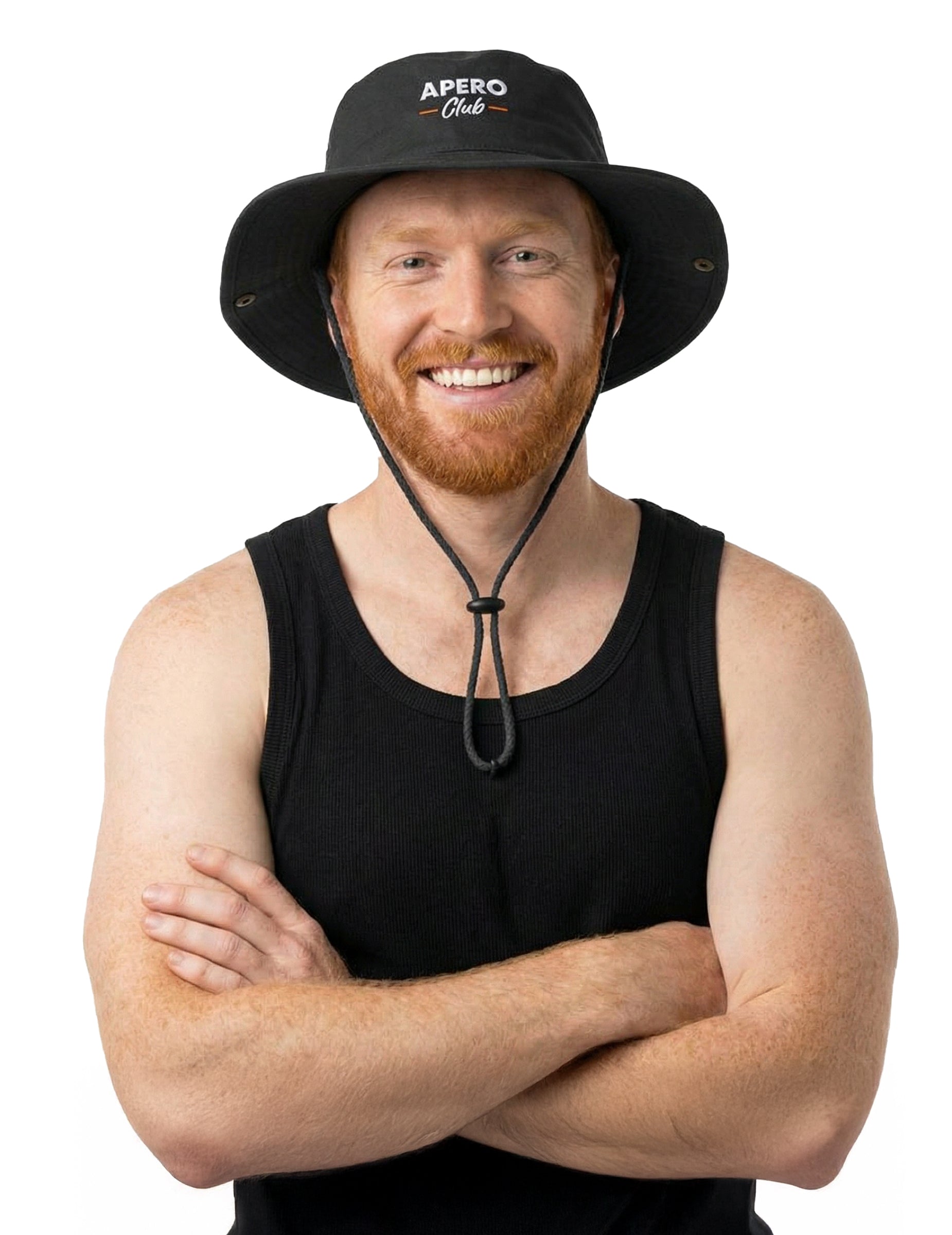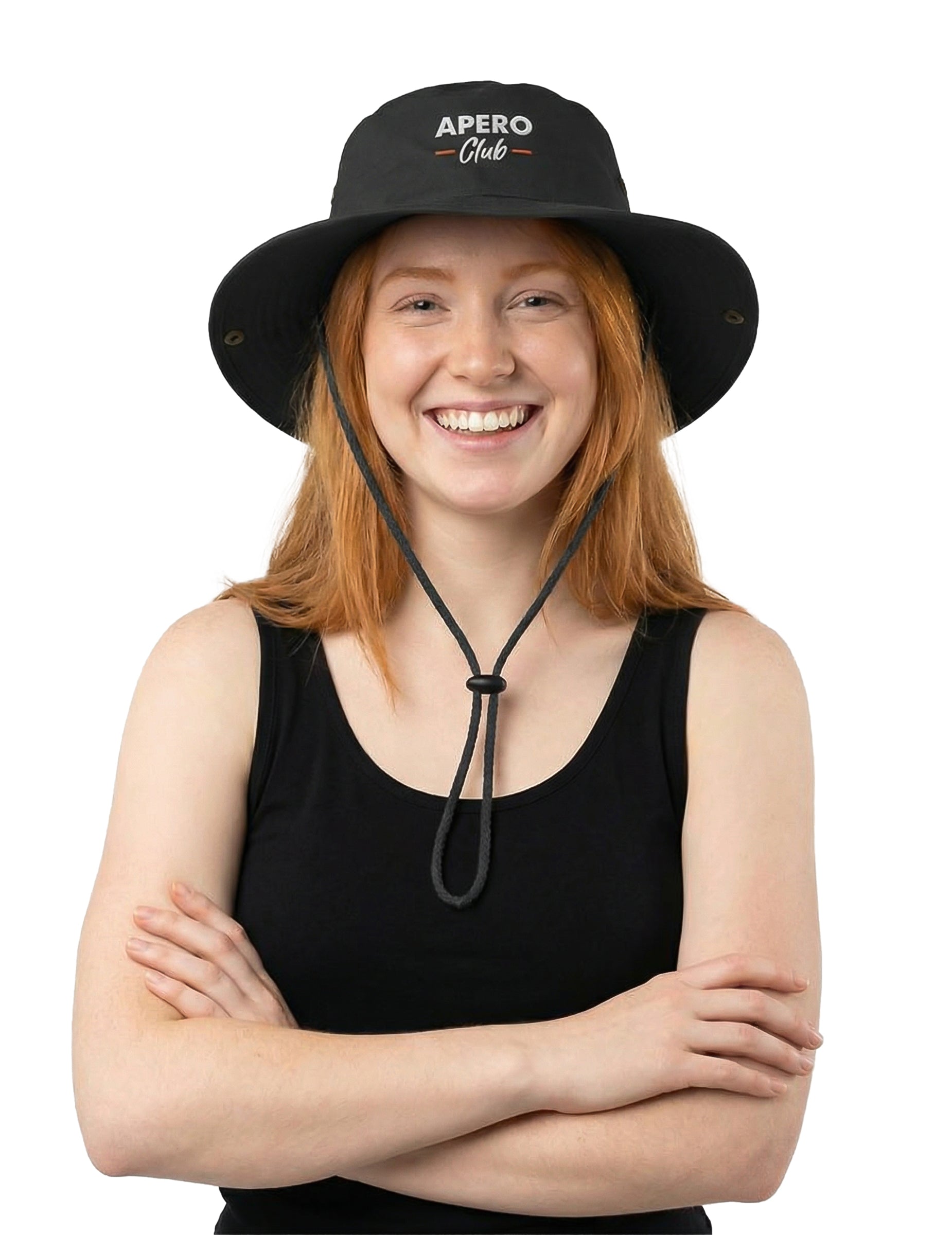 Ez a fekete zsinóros Apero Club kalap laza megjelenést kölcsönöz hajlékony formájának és visszafogott színének köszönhetően. Az „Apero Club” logó barátságos hangulatot teremt, amely tökéletesen illik egy kötetlen, baráti ünnepléshez. Állítható zsinórjával stabilan a helyén marad, és kényelmesen viselhető nyári bulikon, szabadtéri rendezvényeken vagy egyszerűen egy laza party-öltözet kiegészítőjeként.