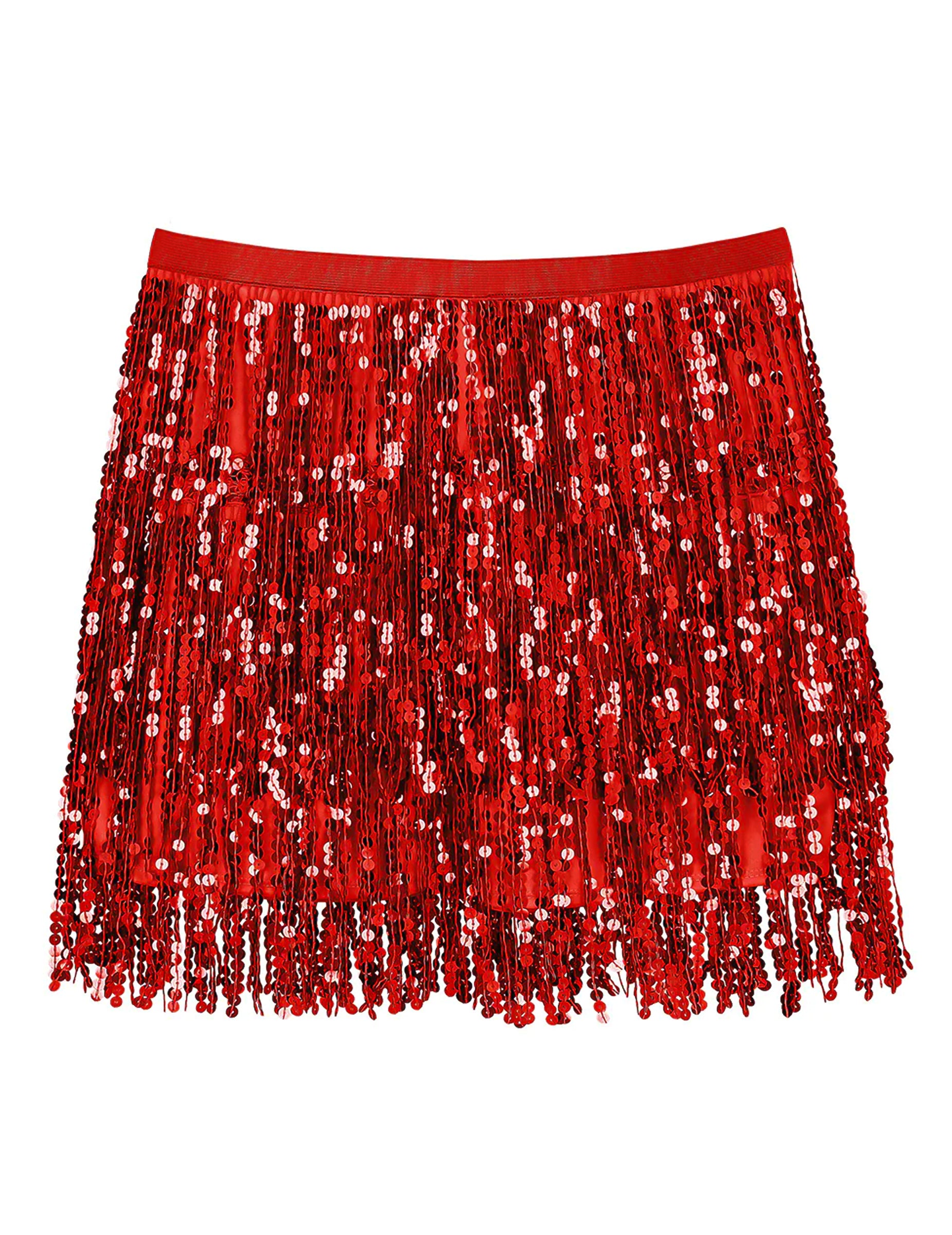 Ez a piros, flitteres miniszoknya nőknek élénk színével és fényt visszaverő flittereivel tűnik ki. Rövid szabása kiemeli az alakot, a rojtok pedig táncos, dinamikus hatást kölcsönöznek. Az összhatás ünnepi hangulatot teremt, amely tökéletesen illik egy esti bulis viselethez. Ideális választás partira, születésnapra vagy bármilyen alkalomra, amikor ragyogó megjelenést szeretnél.