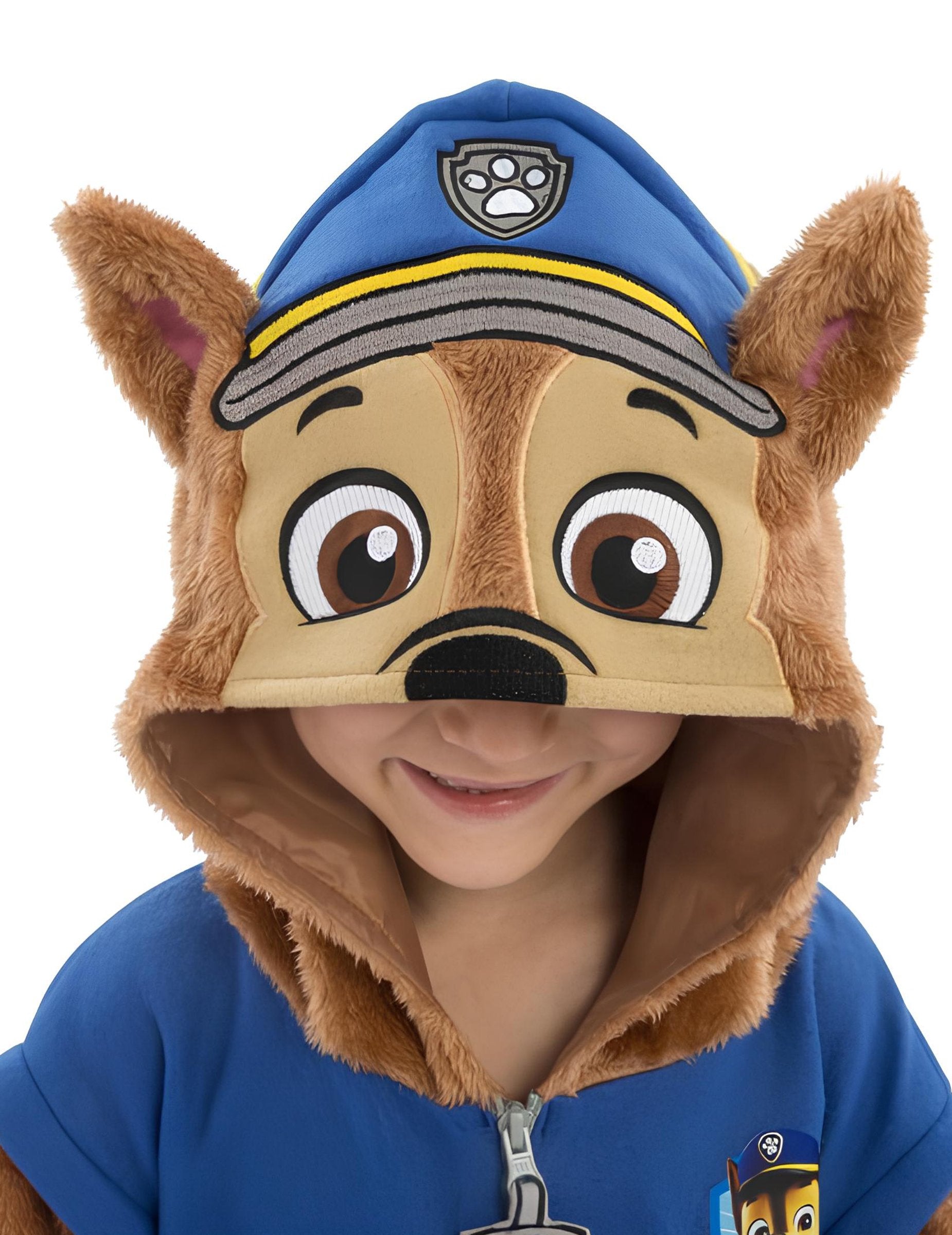 Ez a gyerekeknek készült Chase Onesie jelmez a hivatalos Mancs Őrjárat (Pat'Patrouille) licence alapján készült. Ez az öltözék lehetővé teszi, hogy gyermeke a híres rendőrkölyök külsejét ölthesse magára a sorozatból. A kezeslábas puha, barna anyagból készült, hosszú ujjú és az alja enyhén szűkített. A felsőrészen kék rész található, rajta jelvény motívummal és nyomtatott zsebekkel. Az elülső cipzáras záródás megkönnyíti a felvételt. A kapucni Chase fejét ábrázolja kiemelkedő fülekkel, nyomtatott részletekkel és olyan formával, amely jól körbeöleli az arcot. Ez a jelmez ideális játékhoz, jelmezes uzsonnához vagy farsangra.
