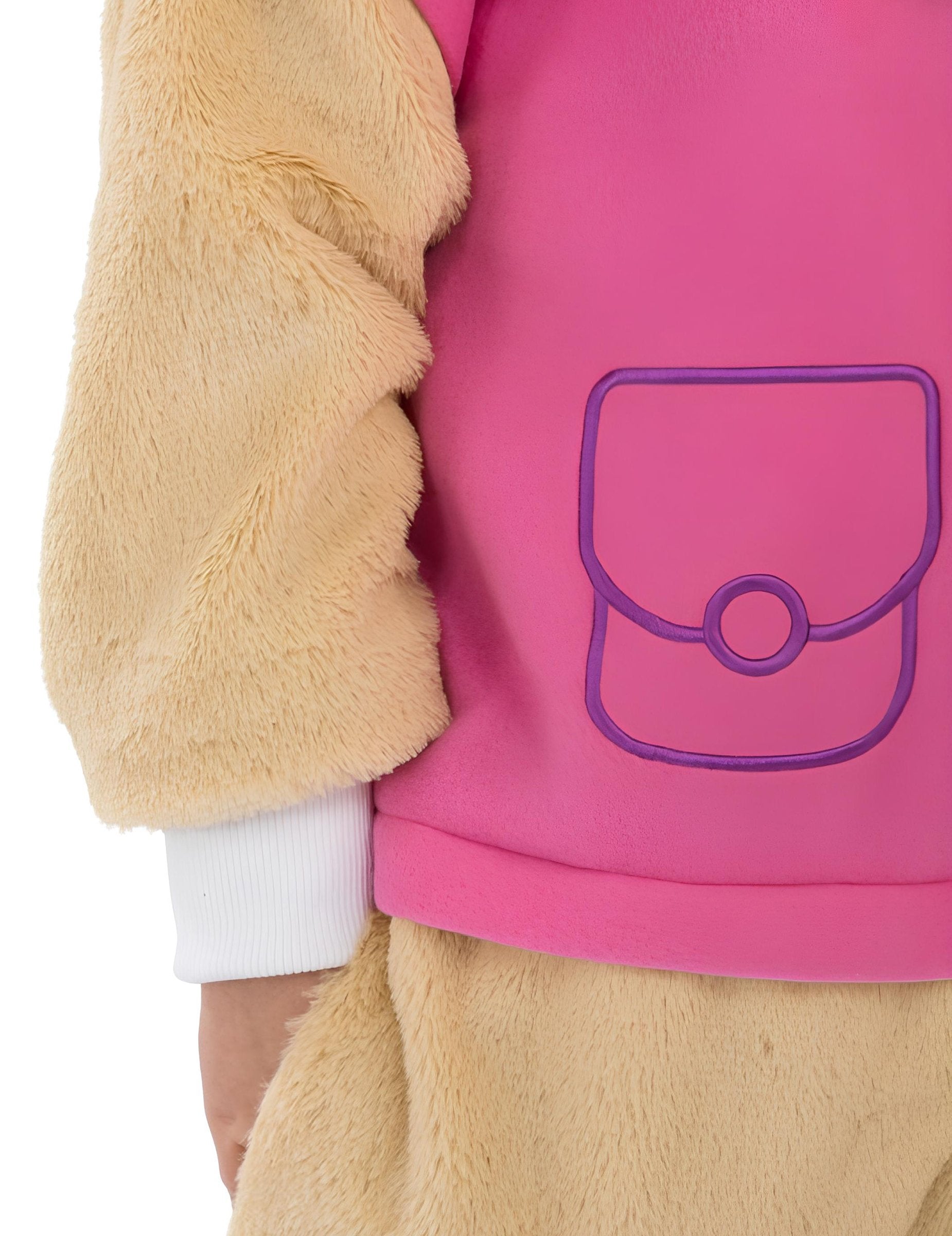 Ez a Stella Mancs Őrjárat gyerek onesie jelmez hivatalos Mancs Őrjárat licenccel rendelkezik. Ez a jelmez lehetővé teszi gyermekének, hogy a népszerű sorozat pilóta kiskutyájának szerepébe bújjon. Az overál puha anyagból készült, alja enyhén szűkített bézs színű. A felső része rózsaszín, nyomtatott jelvénnyel és rajzolt zsebekkel díszítve. Elöl cipzárral nyitható. A kapucni Stella fejét ábrázolja, kiemelkedő fülekkel, nyomtatott szemüveggel és az ő arcvonásait visszaadó arccal. Ez a jelmez tökéletes választás játékhoz, jelmezes születésnapra vagy farsangra.