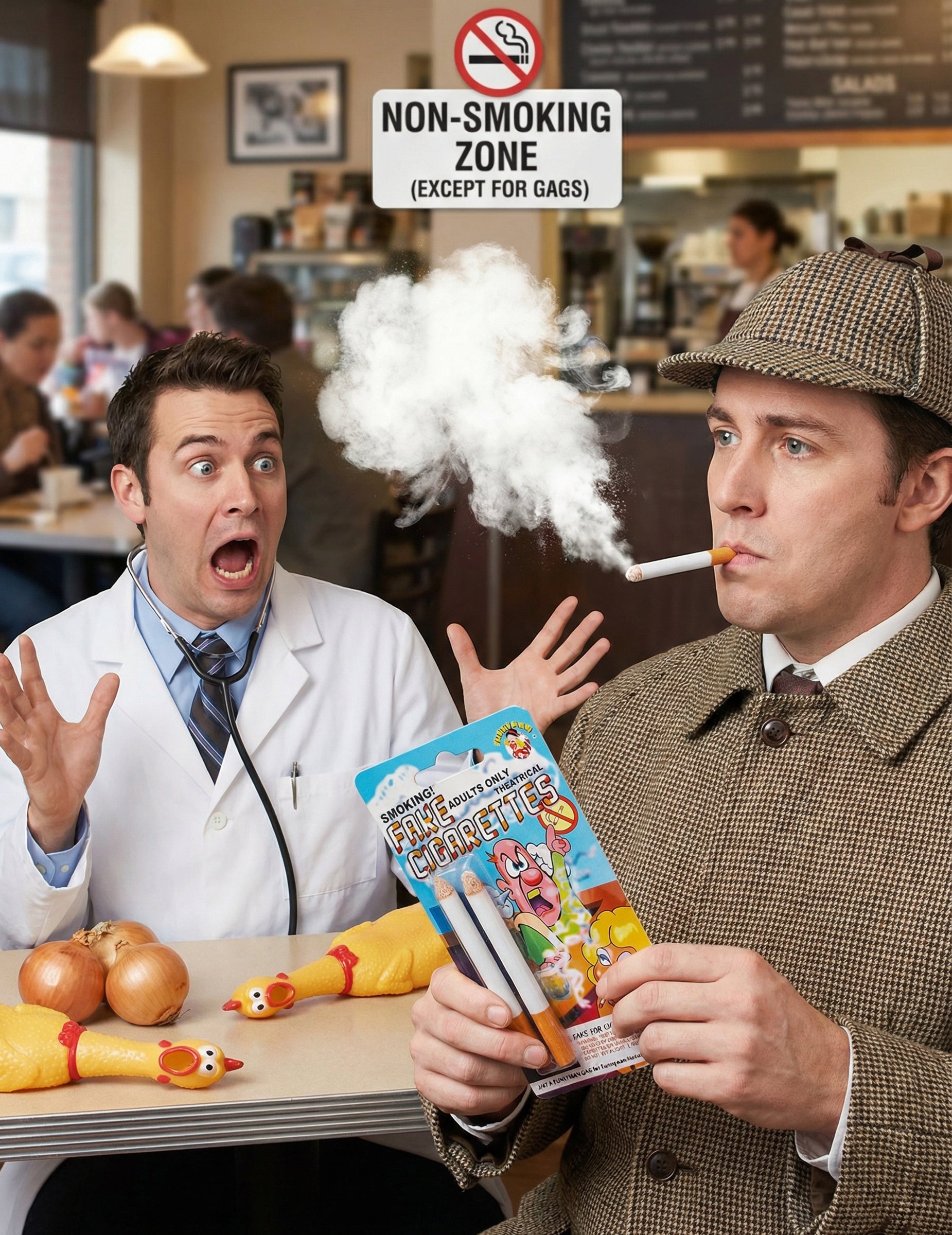 Ezekkel 2 hamis dohányzó cigarettas, hozzáadsz egy kis szórakozás egy baráti összejövetelen vagy bármilyen bulin, ahol egy kis meglepetést szeretnél okozni.