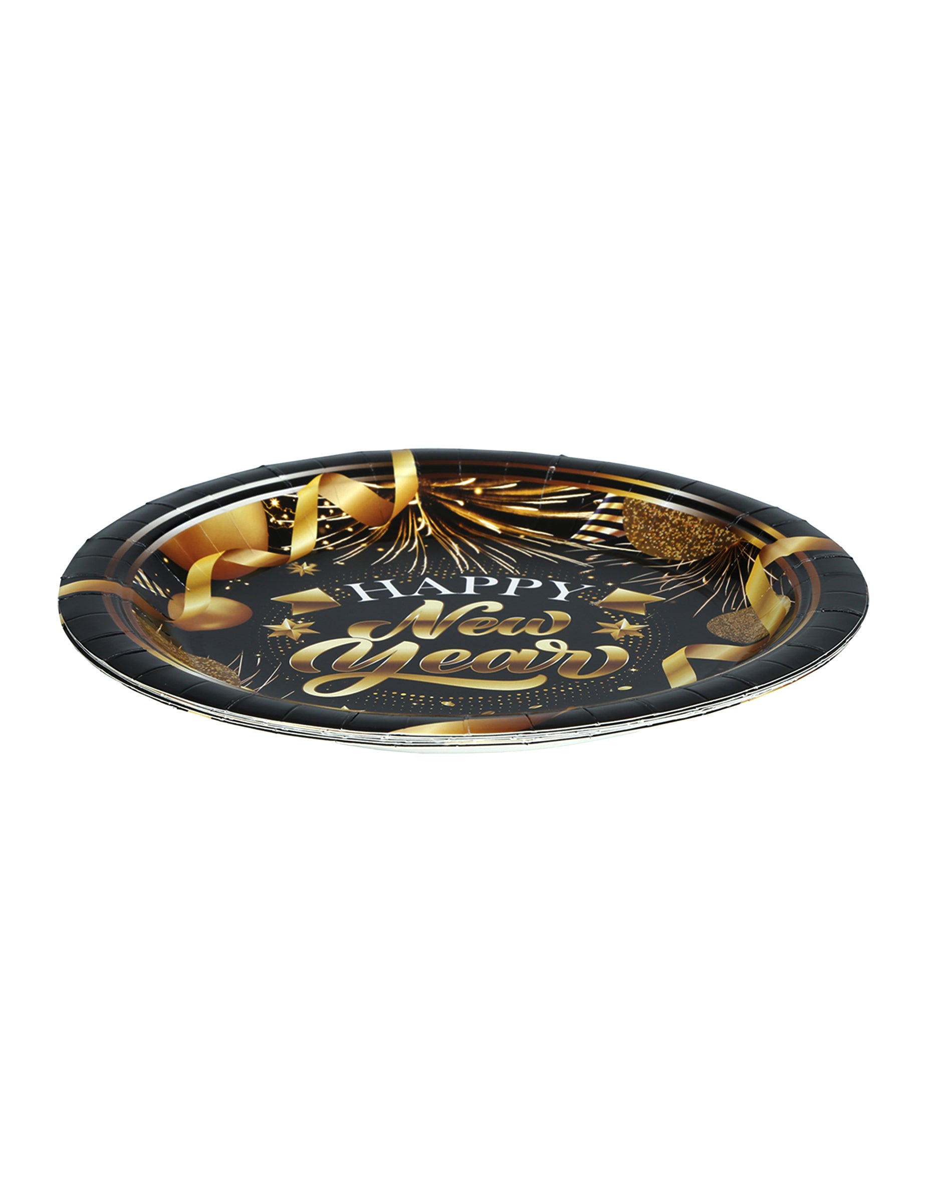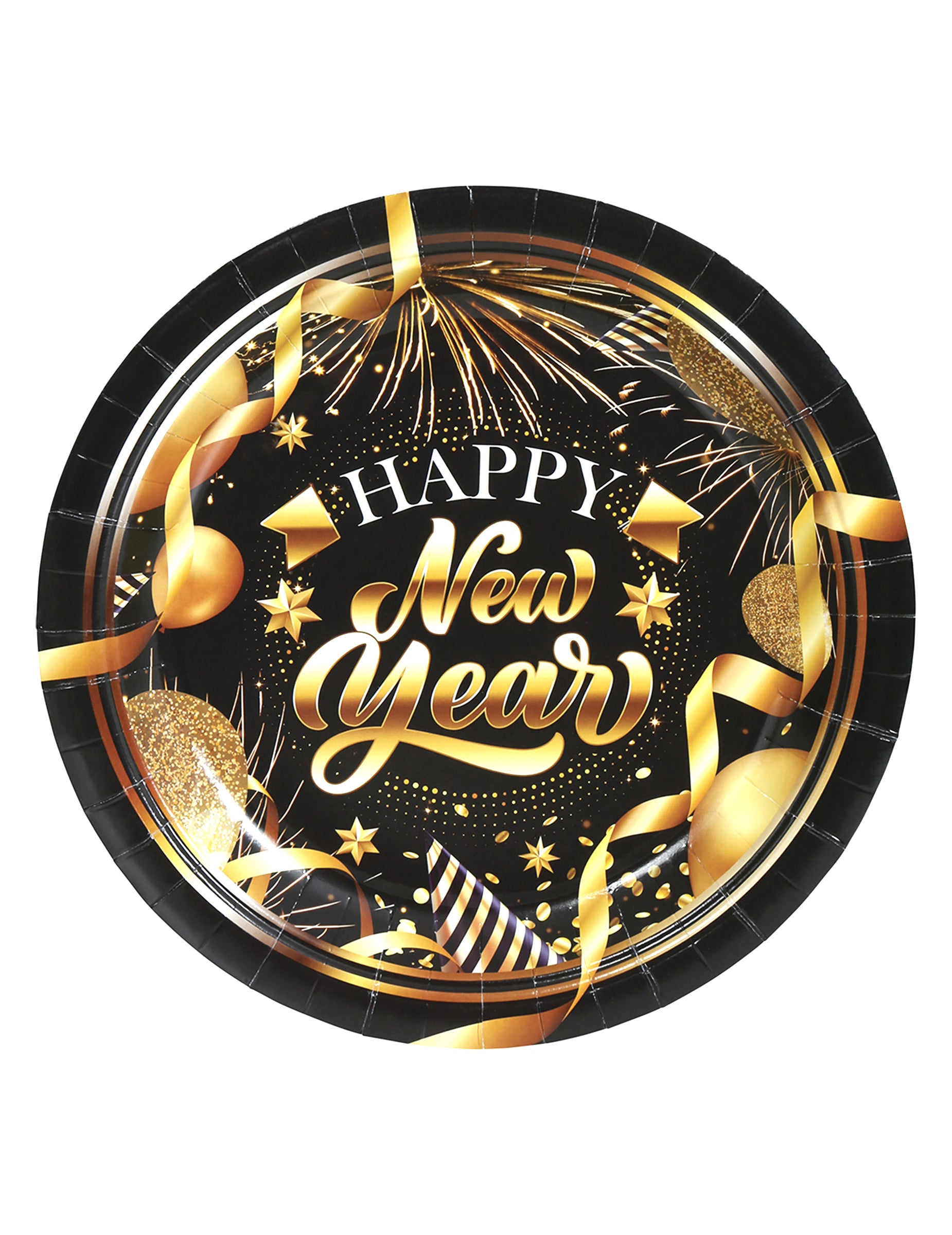 6 fekete és arany boldog új évet papírtányér 23 cm