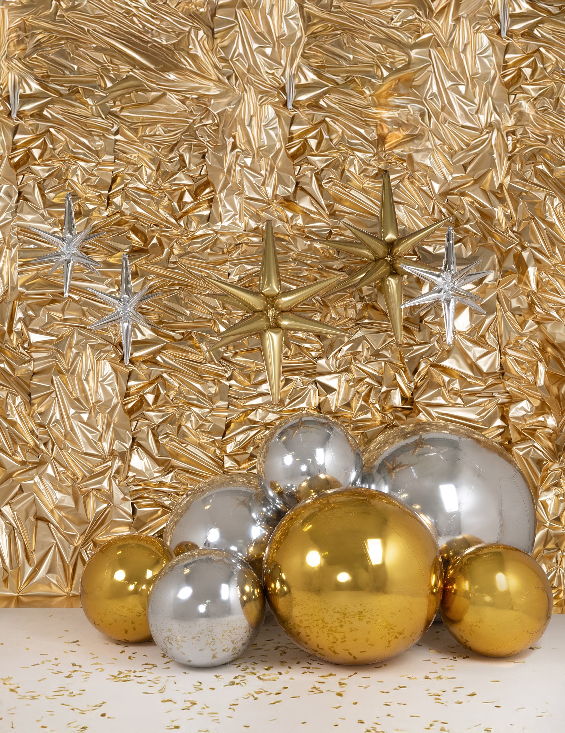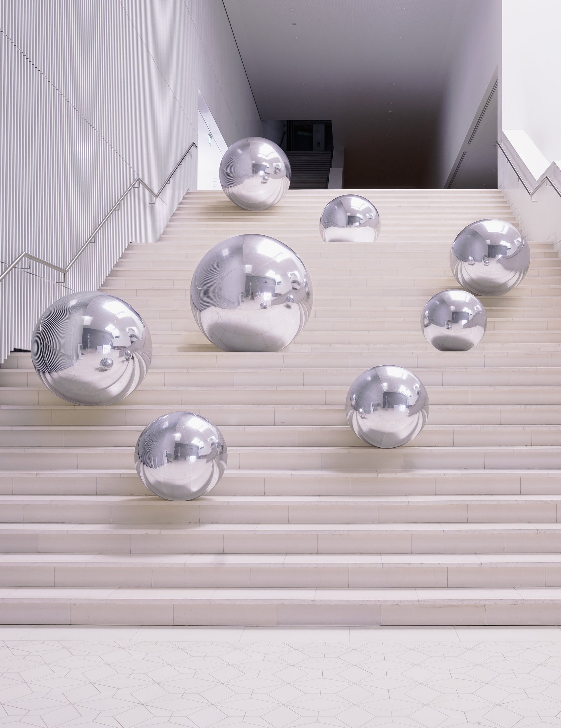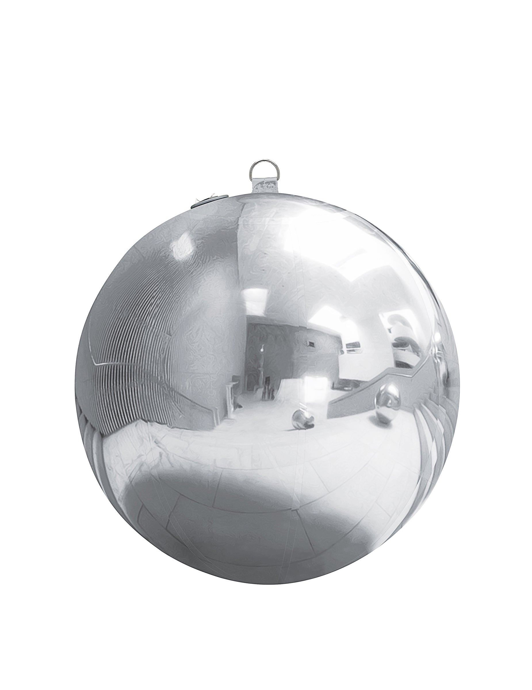 Tükörhatású ezüst felülete visszaveri a fényt és a környező elemeket. Gömb alakja és körülbelül 60 cm átmérője megkönnyíti elhelyezését egy teremben, rendezvényhelyszínen vagy fotóháttérként.