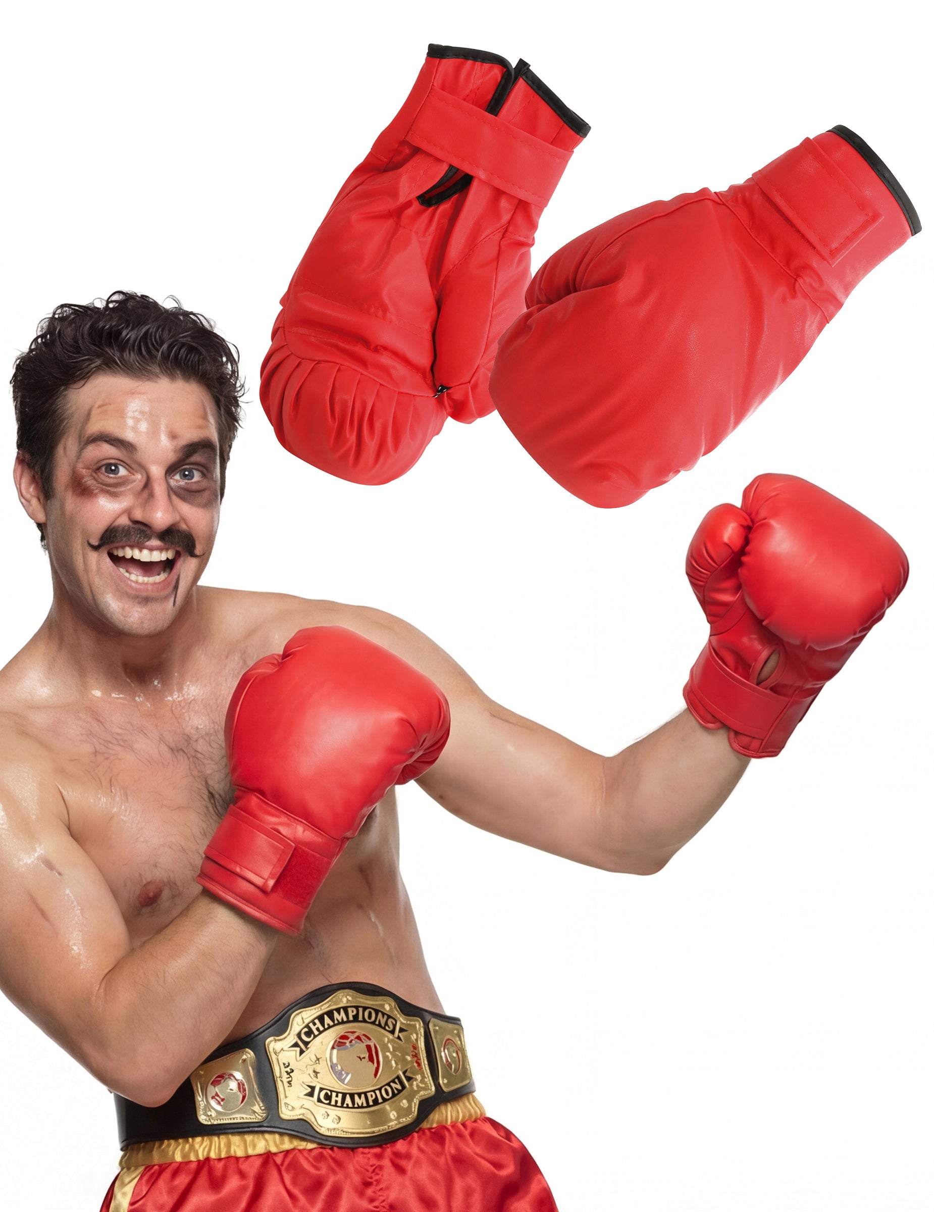 A piros felnőtt bokszkesztyűk ideálisak karneválra, Halloweenre, jelmezes bulira vagy bármilyen sportos témájú eseményre.